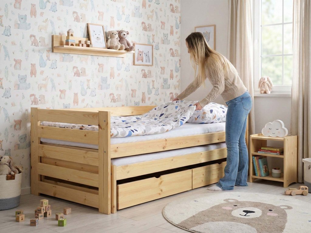 - Drevené rozkladacie postele