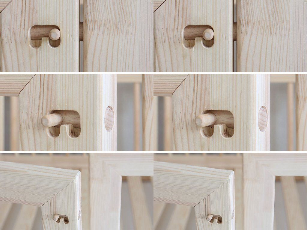 Posteľ je vyrobená z kvalitného lepeného borovicového dreva, ktoré je známe svojou odolnosťou a prirodzenou kresbou. Neošetrený povrch v prírodnom prevedení umožňuje zachovať autentický vzhľad dreva alebo si ho prispôsobiť podľa vlastných predstáv. Precízne spracovanie, pevné spoje a dôraz na detail zaručujú stabilitu a bezpečné používanie.