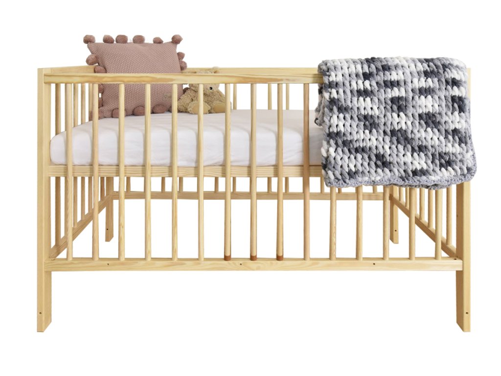 Borovicová detská postieľka s nastavením výšky