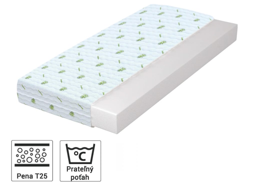 Detský penový matrac Andrea 120x200 cm patrí do kategórie stredne tvrdých matracov. Je vyrobený z prevzdušnenej polyuretánovej peny T25, ktorá sa vyznačuje vysokou elasticitou a zvýšenou odolnosťou. Všetky použité materiály boli vyberané tak, aby sa eliminovalo riziko vzniku alergických reakcií, usadzovaniu roztočov a podporila sa cirkulácia vzduchu a odvádzanie vlhkosti. Matrac je obojstranný a vďaka nízkej hmotnosti sa s ním ľahko manipuluje. Matrac má antialergický poťah na zips Aloe Vera, ktorý je prateľný v práčke na 30 °C.