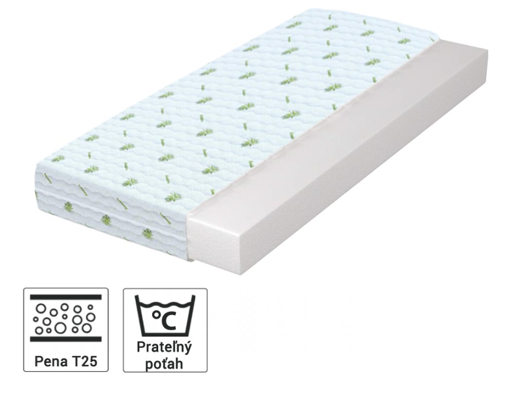 Detský penový matrac 90x200 cm patrí do kategórie stredne tvrdých matracov. Je vyrobený z prevzdušnenej polyuretánovej peny T25, ktorá sa vyznačuje vysokou elasticitou a zvýšenou odolnosťou.
