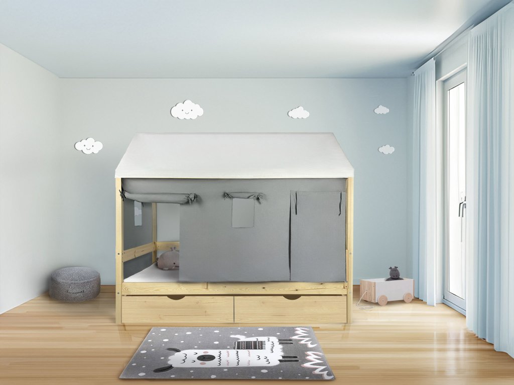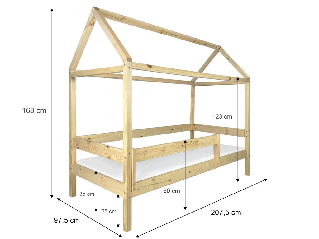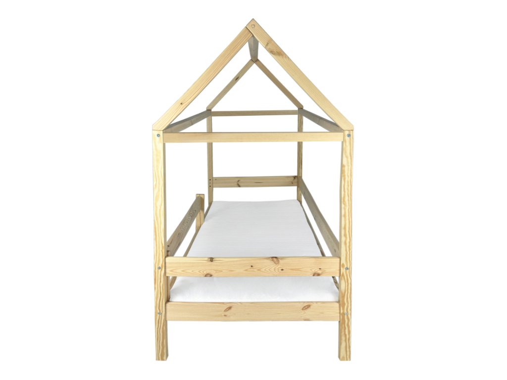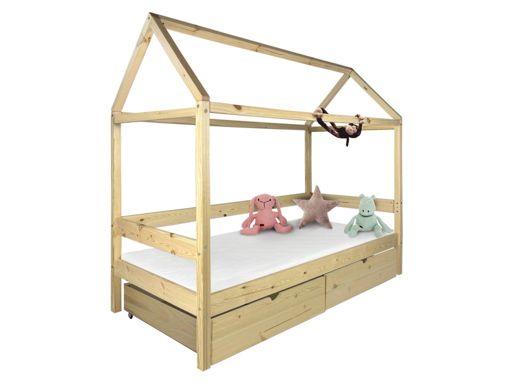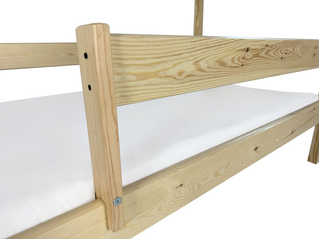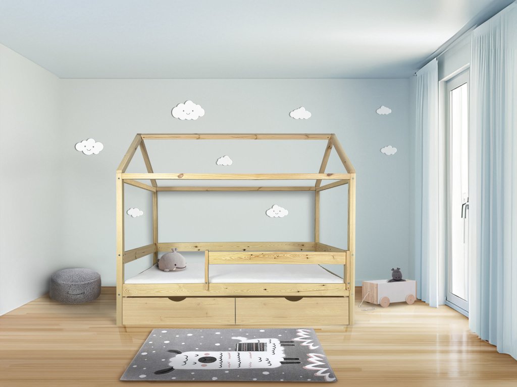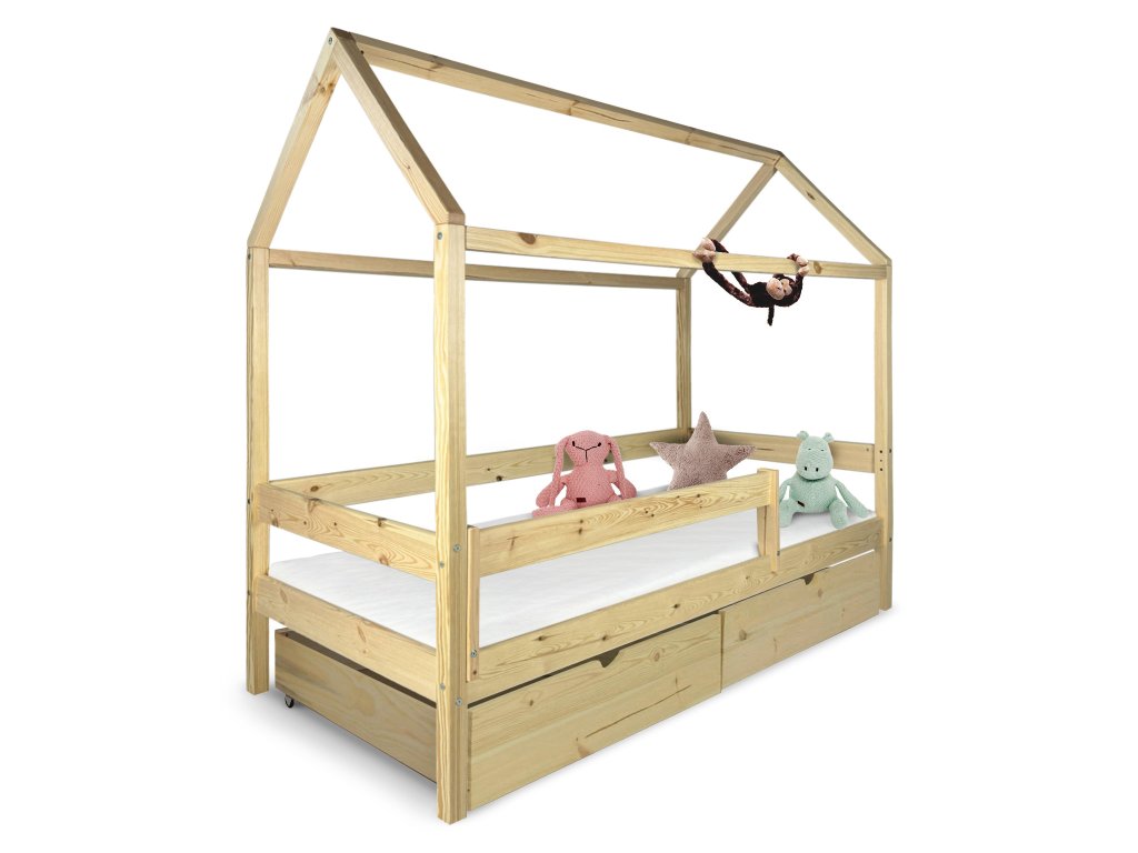 Domčeková posteľ Pery je dokonalým kúskom nábytku pre každú detskú izbu, ktorá prináša hravosť a pohodlie do detského sveta. Posteľ je vyrobená z odolného borovicového dreva, ktoré svojou prírodnou borovicovou farbou dodáva teplý a príjemný pocit. Jedná sa o jednolôžkovú posteľ s rozmerom 90x200 cm, čo poskytuje dostatok priestoru pre pohodlný spánok. Tvar domčeka je nielen esteticky príťažlivý, ale aj funkčný, pretože poskytuje deťom kreatívne možnosti a pocit bezpečia. S odnímateľnou zábranou, ktorá sa dá namontovať na ľavú alebo pravú stranu, zaisťuje bezpečnosť počas celej noci. Pery prichádza aj s latkovým roštom, ktorý zabezpečuje správnu podporu matraca a tým aj zdravý spánok. Jedným z najatraktívnejších prvkov tejto postele sú dva priestranné úložné boxy na kolieskach, ktoré ponúkajú dostatok priestoru pre uloženie hračiek alebo posteľnej bielizne, čím udržiavajú izbu upratanú. Posteľ je možné ozdobiť najrôznejšími dekoráciami a je teda nielen praktickým, ale aj krásnym doplnkom, ktorý podporuje kreativitu a zaručene si získa srdce každého dieťaťa.