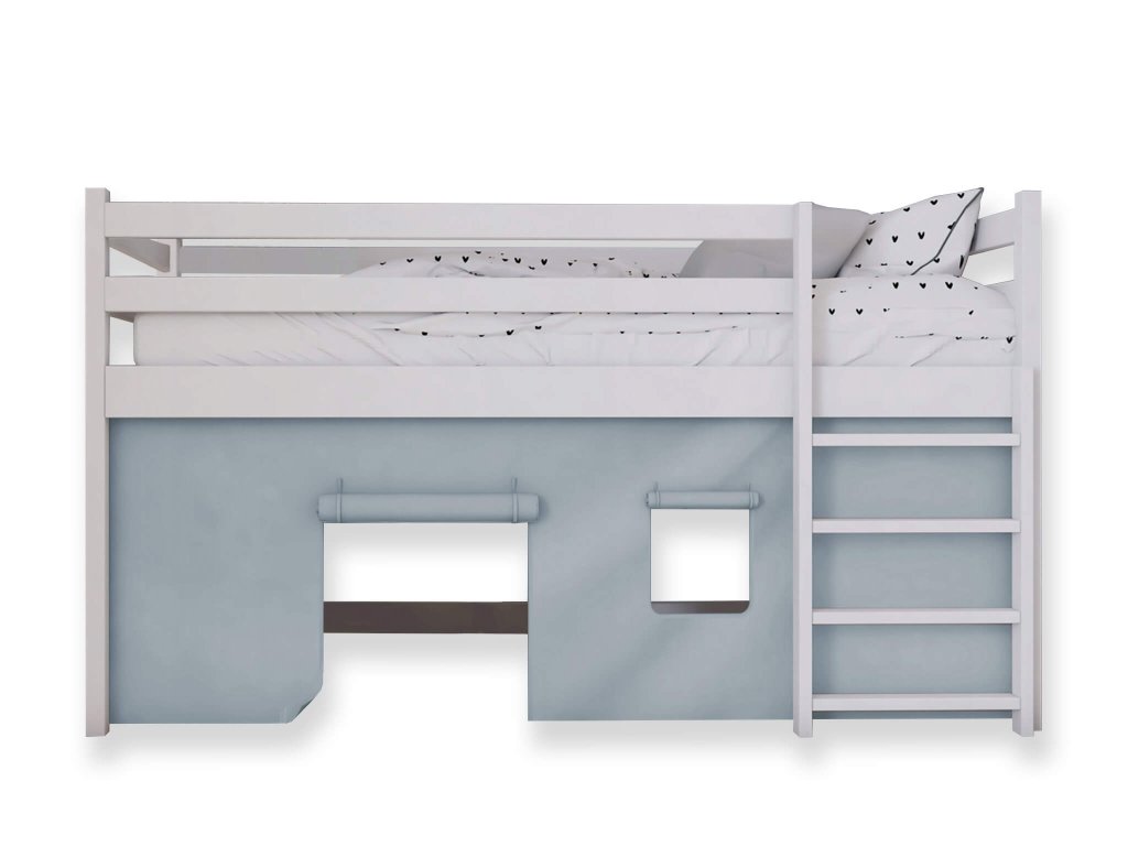 Predstavujeme vám vyvýšenú detskú posteľ Bunkie v elegantnej bielej farbe. Výška postele je dostatočná, aby vaše dieťa mohlo spokojne spať a zároveň sa cítiť ako vlastník svojho vlastného útulného priestoru. Táto posteľ nie je len obyčajným lôžkom, ale ponúka aj miesto pre deti na hranie pod ňou. Pod posteľou sa totiž nachádza dostatočný priestor, kde si môžu vaše deti vytvoriť svoj vlastný svet a hrať sa podľa svojej fantázie. Ak si k posteli dokúpite záclonku, vznikne pod ňou malý domček na hranie. Prípadne vám priestor poslúži na uskladnenie hračiek a iných vecí. Univerzálna pozícia rebríka umožňuje zvoliť si, na ktorej strane postele bude umiestnený, čo robí tento nábytok ešte viac prispôsobiteľným potrebám vašej miestnosti.