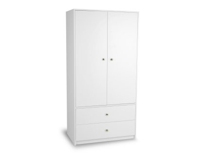 Praktická biela šatníková skriňa so striebornými úchytmi