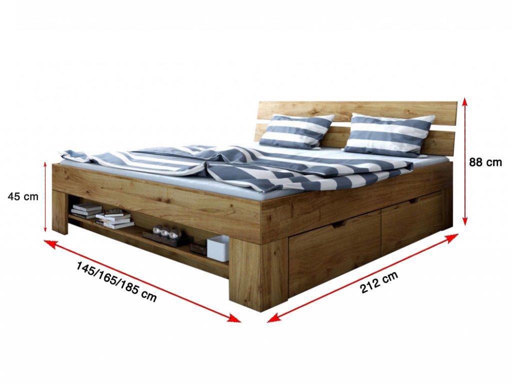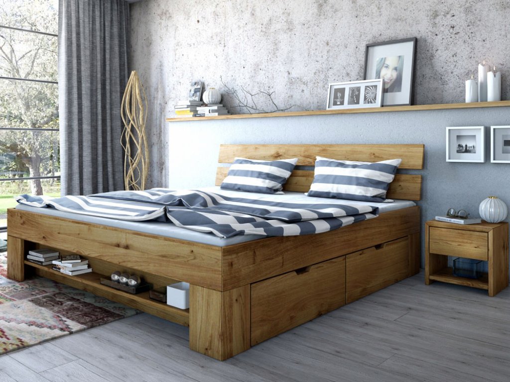Masívna dubová manželská posteľ s úložným priestorom Stela