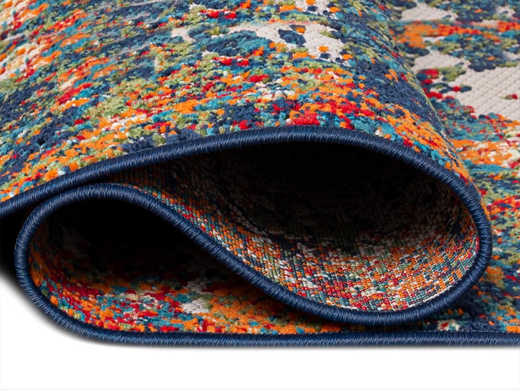 Dizajnový farebný koberec s hustými štetinami 1500g/m2 a s výškou vlasu 6 milimetrov. Jedinečný koberec obsahuje mäkké a pružné vlákna. Koberec je odolný voči oderu. Výhodou je nízky vlas a jednoduchá údržba koberca. Moderný koberec do obývačky, spálne alebo oživí detskú či študentskú izbu. Koberec rozžiari moderný aj tradičný interiér vášho domova.