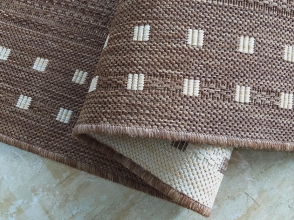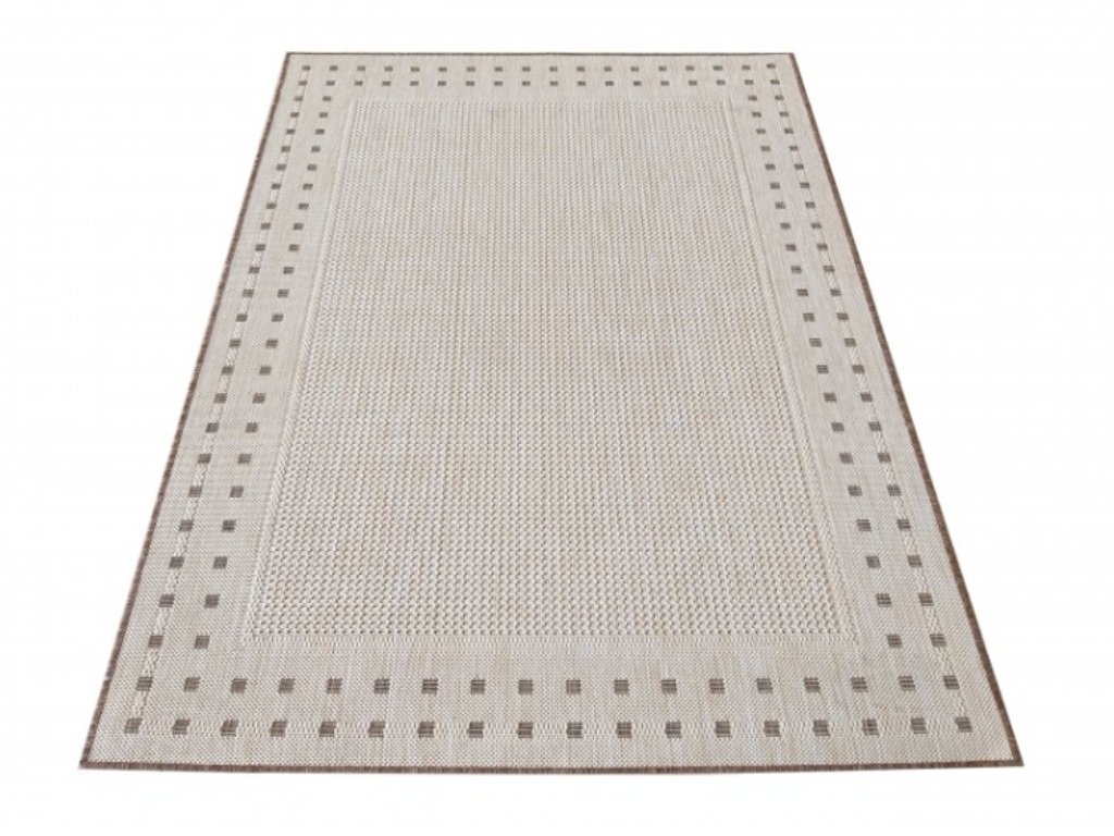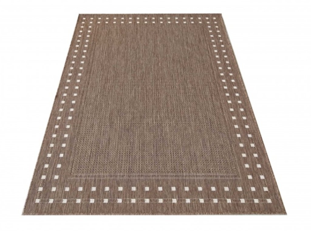 Vonkajší koberec Zara je rozhodne výnimočným a netradičným dizajnovým kúskom, ktorý je pripravený hrdo zdobiť akýkoľvek interiér. Obojstranný koberec v hnedo-krémovom prevedení si zamilujete v prípade, že nemáte radi stereotyp. Strany koberca môžete striedať podľa príležitosti či nálady. Koberec je tkaný z polypropylénového vlákna, ktoré svojím vzhľadom pripomína vlnu. Vďaka polypropylénu a kvalitnému spracovaniu koberec získava potrebnú pevnosť, odolnosť voči predčasnému opotrebovaniu a dlhodobo si zachová atraktivitu farieb. Koberec z polypropylénového vlákna zabraňuje absorbovaniu vlhkosti čím predíde vzniku a rozširovaniu plesní a následnému nepríjemnému zápachu.