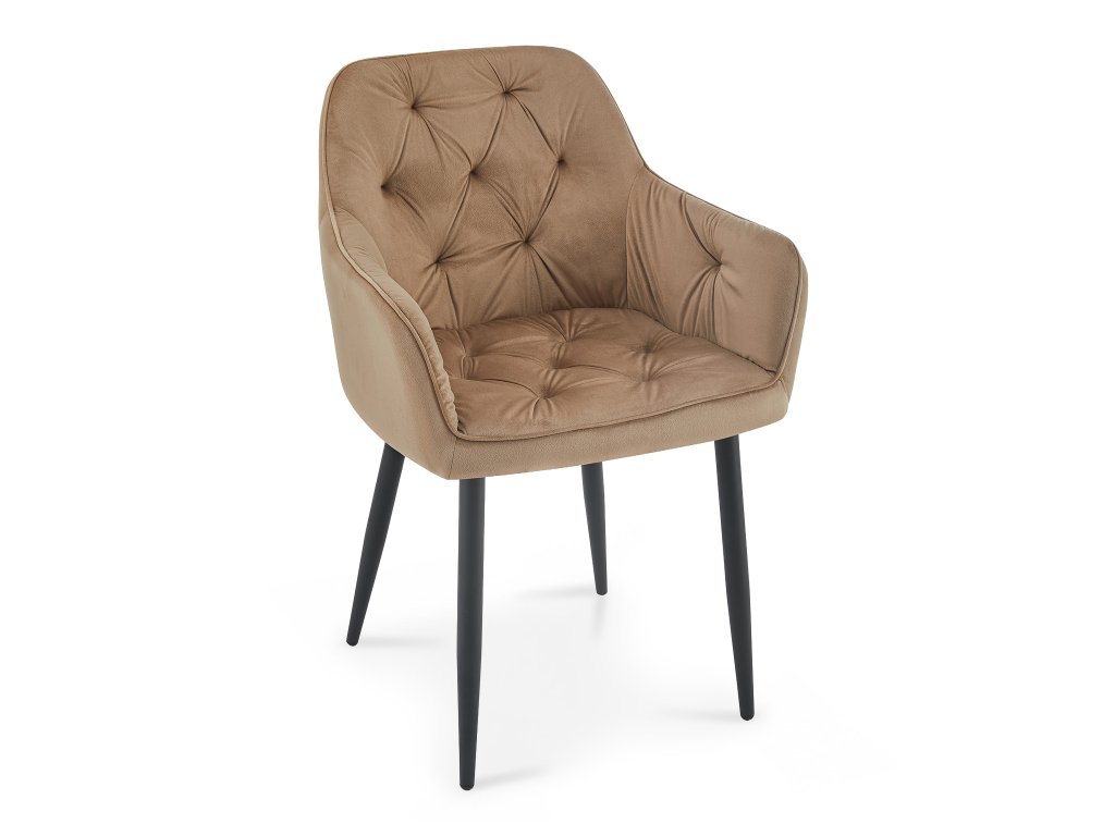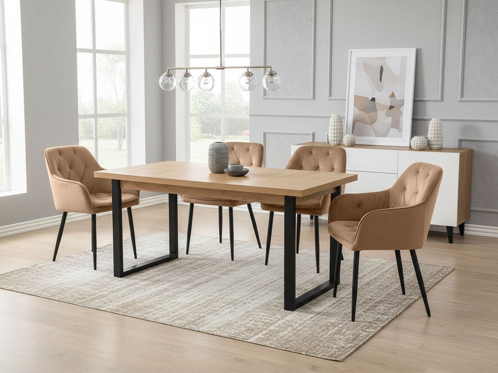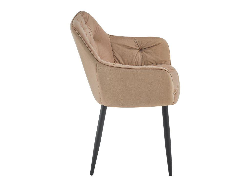 Elegantná jedálenská stolička Adria v béžovom prevedení je ideálnou voľbou pre každú modernú jedáleň. Kombinuje pohodlie, kvalitné materiály a nadčasový dizajn. Stolička do jedálne je čalúnená príjemnou zamatovou látkou, ktorá je prešitá na opierke chrbta pre lepší komfort a estetický vzhľad. Pevná kovová konštrukcia s čiernym práškovým náterom a čierne nožičky zabezpečujú stabilitu a dlhú životnosť. S jedálenskou stoličkou Adria stačí doplniť vhodný jedálenský set a jedálenský stôl a vaša jedáleň je okamžite kompletná a štýlová.