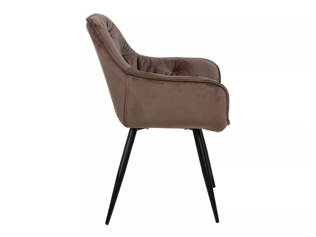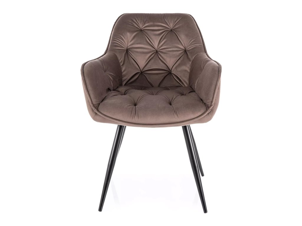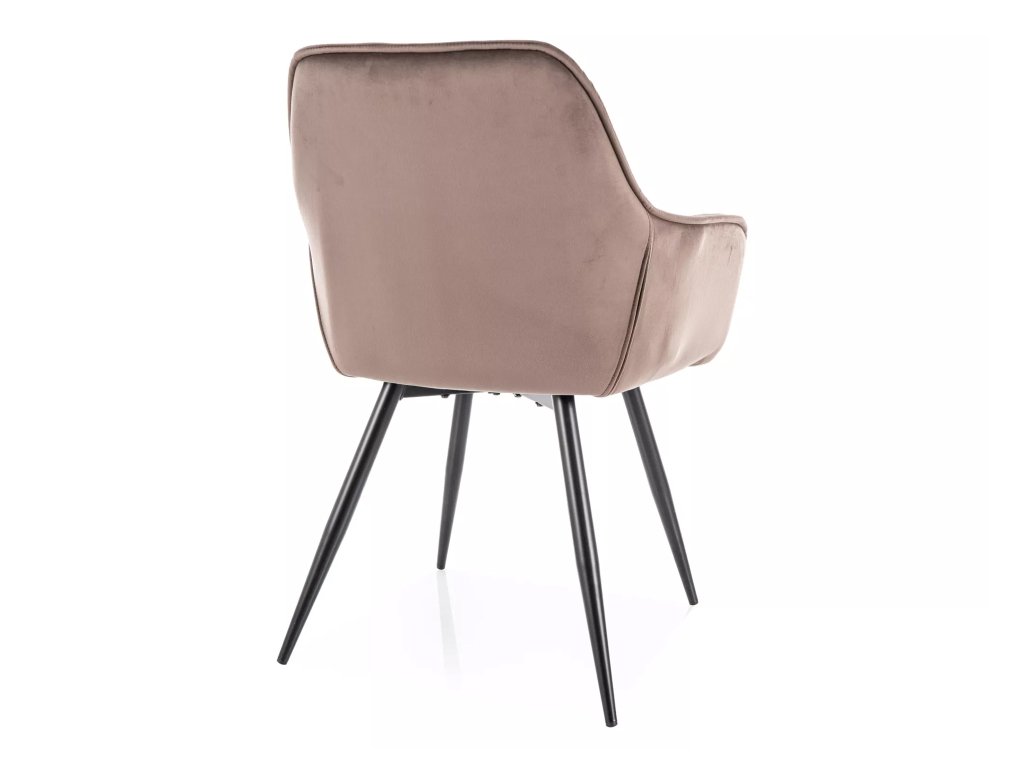 Jedálenská stolička Bria zaujme moderným vzhľadom a jemne zaoblenými líniami, ktoré jej dodávajú elegantný charakter. Ergonomicky tvarované operadlo so zabudovanými podrúčkami zaručuje pohodlné sedenie aj pri dlhšom používaní. Mäkký zamatový poťah Bluvel 38 vo farbe kapučíno s dekoratívnym prešívaním pôsobí luxusne a je príjemný na dotyk. Okrem štýlu ponúka aj praktické výhody – látka je odolná voči oderu, žmolkom a jednoducho sa čistí. Stabilné čierne kovové nohy dopĺňajú dizajn a zabezpečujú pevnosť. Bria sa vyníma nielen pri jedálenskom stole, ale aj ako štýlový kúsok v obývačke.