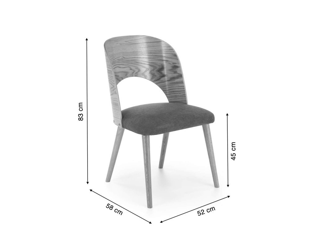 Ak hľadáte jedinečný prvok do vašej jedálne či kaviarne máme pre vás modernú jedálenskú stoličku Cadiz, ktorá určite naplní vaše očakávania. Moderný dizajn zdôrazní charakter stoličky a vkusne doplní váš priestor. Kombinácia nadčasového dizajnu a komfortu robí zo stoličky skvelú voľbu pre každý interiér. Operadlo stoličky je z ohýbanej preglejky čo krásne ladí s moderným interiérom. Sedadlo je čalúnené sivou látkou a poskytuje pohodlie pri sedení. O stabilitu sa postarajú 4 pevné nohy, ktoré sú vyrobené z masívneho dreva. Nohy sú v prírodnej farbe. Kvalitné materiály zaručia dlhodobé využívanie. Moderný dizajn stoličky sa bude skvelo vynímať vo vkusne zariadenej domácnosti, kaviarni, alebo v reštaurácií.