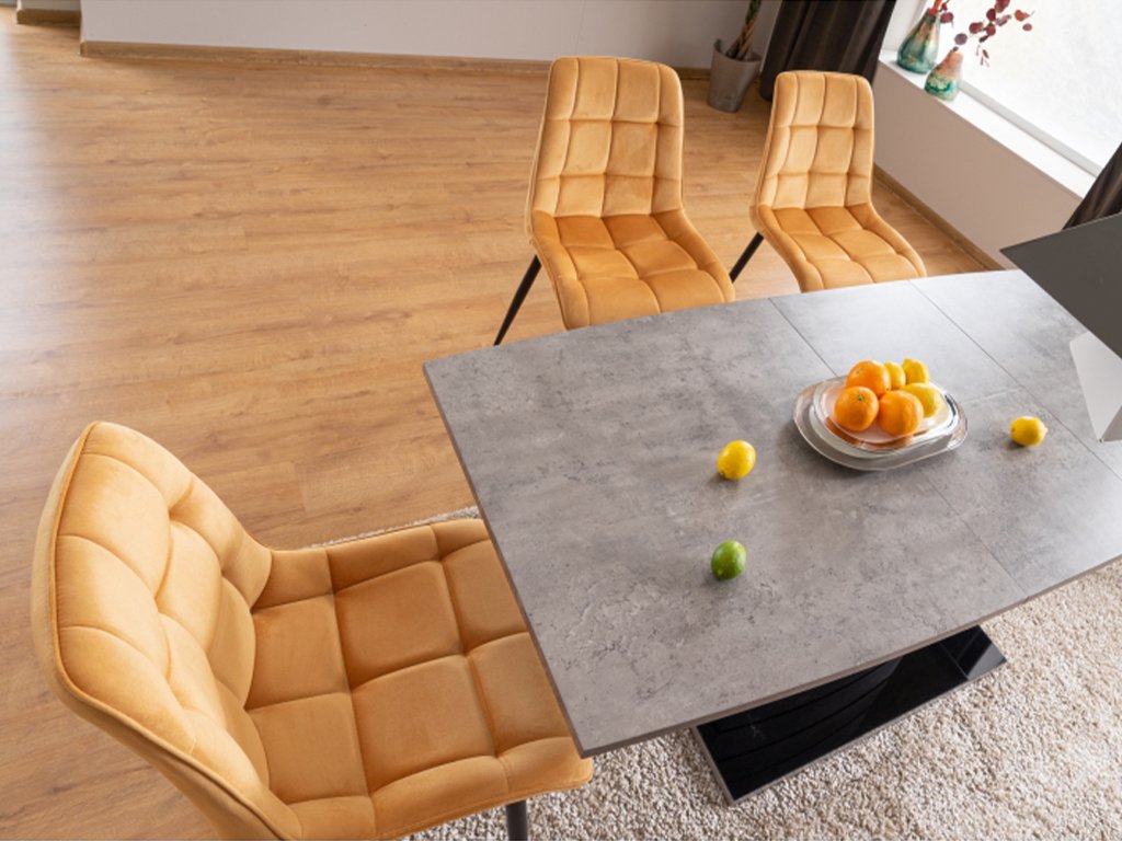 Čalúnená jedálenská stolička Elizabeth si Vás okamžite získa svojou elegantnosťou a komfortom, ktorý ponúka. Je kúskom, ktorý nezostane bez povšimnutia u žiadneho milovníka dizajnu. Kombinácia atraktívneho ozdobného prešívania zamatovej látky spolu s jednoduchými čiernymi nohami vnáša do interiéru sviežosť a pôvab. Je ideálnou voľbou pre ľudí, ktorí oceňujú jednoduché, funkčné a elegantné riešenia. Stolička je vhodná do jedálne, ale nestratí sa ani v iných miestnostiach. K stoličke Elizabeth bude dokonale pasovať napríklad jedálenský stôl Darcy.