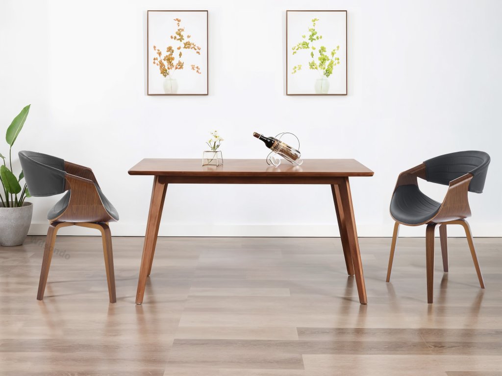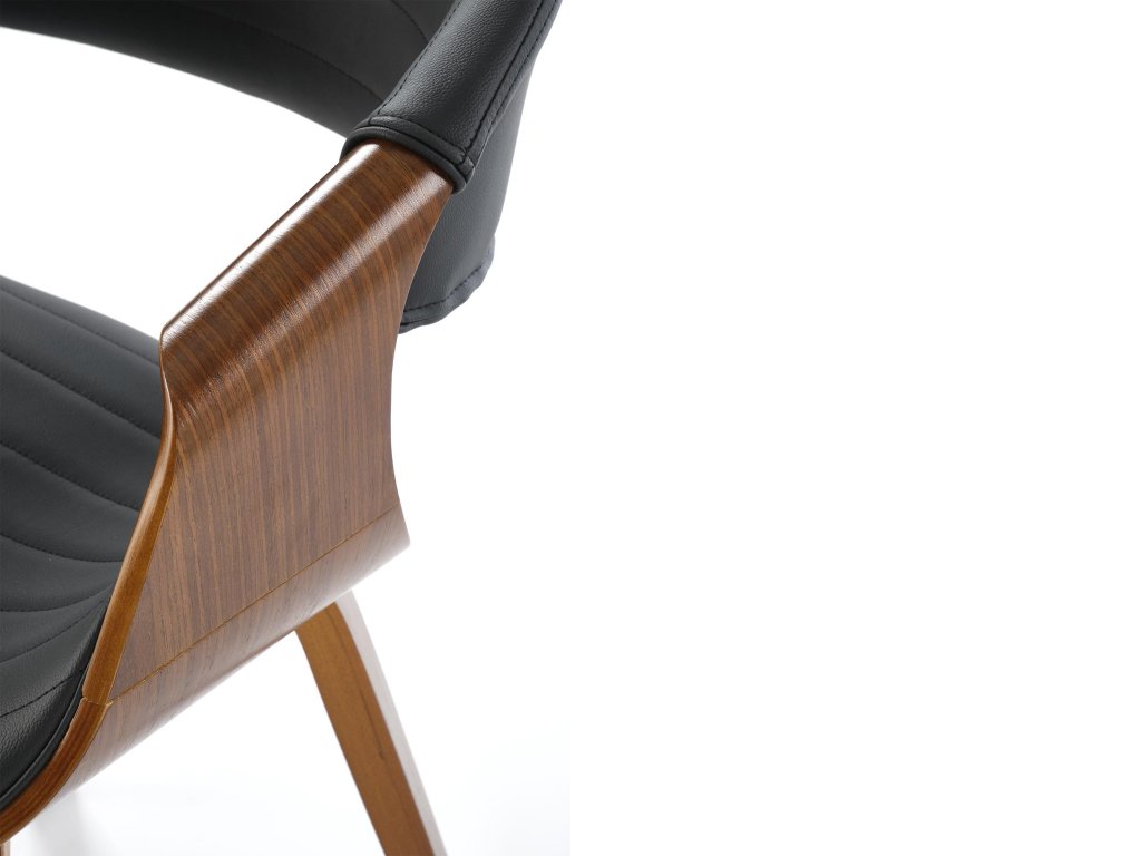 Jedálenská stolička K544 je elegantným spojením štýlu a funkčnosti, ktoré obohatí každú miestnosť vo vašom domove. Stolička kombinuje orechový odtieň ohybnej preglejky s čiernym čalúnením z kvalitnej ekokože, čo jej dodáva moderný vzhľad s nádychom sofistikovanosti. Táto stolička do jedálne je nielen ideálnym doplnkom do jedálenského priestoru, ale skvelo poslúži aj ako kancelárska stolička, stolička do kuchyne, pri písacom stole alebo ako štýlový doplnok v iných priestoroch.