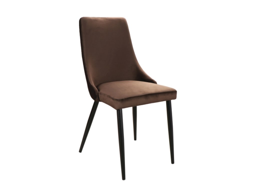 Hnedá jedálenská stolička Piano B Velvet oživí tradičný aj moderný interiér v každej domácnosti. Príjemná zamatová látka a elegantné kovové nohy dotvárajú celkový minimalistický dizajn, ktorý vás zaujme na prvý pohľad. Nohy sú vyrobené z kovu lakovaného matnou čiernou farbou. Celkový vzhľad dopĺňa vkusné prešívanie na zadnom operadle stoličky.