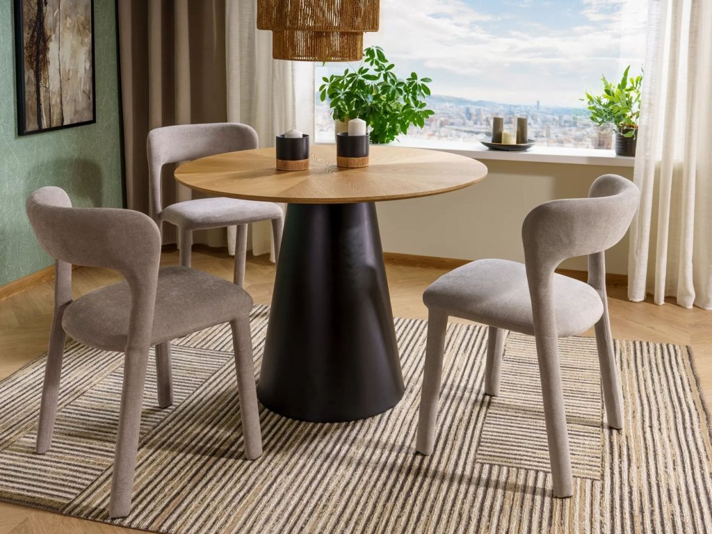 Dizajnová jedálenská stolička Vico v kašmírovej farbe dodá interiéru jemnú eleganciu a nadčasový vzhľad. Čalúnenie z látky Wind 82 ponúka príjemne hebký povrch s decentným leskom, je odolné, ľahko udržiavateľné a vhodné aj do rušnej domácnosti či štýlovej reštaurácie. Čalúnené nohy stoličke dodávajú ľahkosť a luxusný nádych, ktorý krásne kontrastuje s matným kašmírovým poťahom. Vďaka ergonomicky tvarovanému operadlu a mäkkému sedáku poskytuje Vico pohodlie aj pri dlhšom sedení. Je to harmonická kombinácia dizajnu a funkčnosti, ktorá zapadne do moderného aj klasického interiéru.