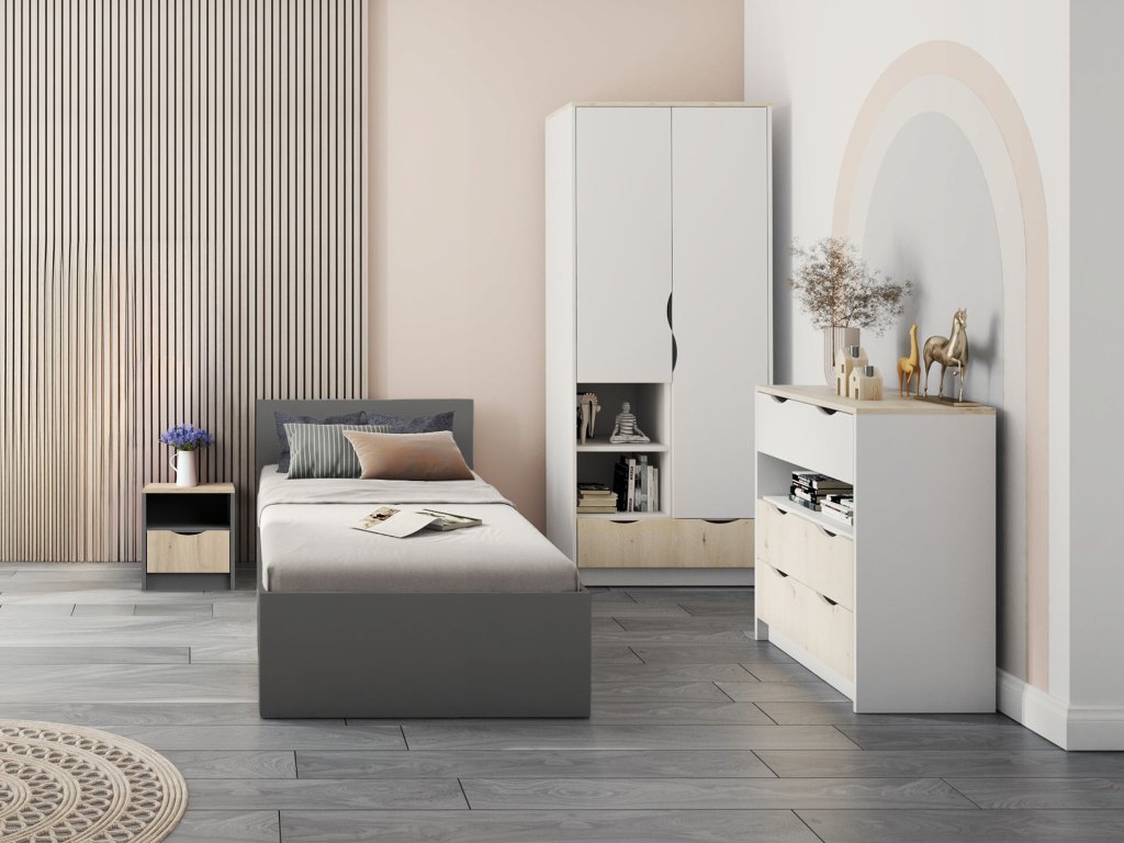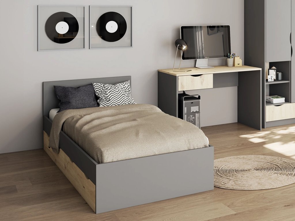 Praktická jednolôžková posteľ pre deti Joy v kombinácii sivej farby a dekoru dub artisan je ideálnym doplnkom do detských a študentských izieb. Jej moderný, no zároveň jednoduchý dizajn vniesie do priestoru príjemnú atmosféru a ľahko sa prispôsobí rôznym štýlom zariadenia. S rozmermi 90 × 200 cm poskytuje pohodlné miesto na odpočinok pre dieťa či tínedžera. Posteľ je vybavená dvoma hlbokými zásuvkami, ktoré ponúkajú dostatok miesta na uskladnenie posteľnej bielizne, oblečenia alebo hračiek.