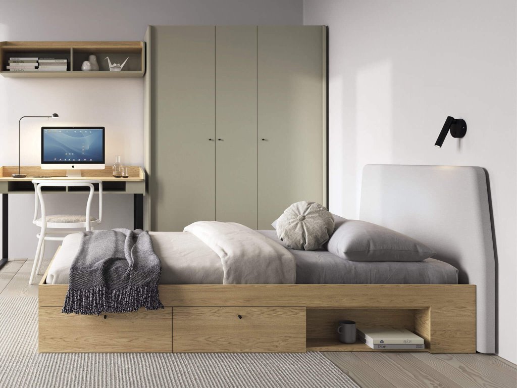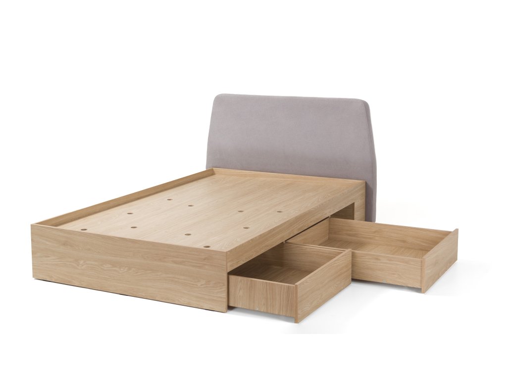 Posteľ je vybavená čalúneným čelom, ktoré zaručuje pohodlie pri sledovaní televízie, listovaní si obľúbeného časopisu či raňajkách v posteli. Dve praktické výsuvné zásuvky na kolieskach poskytujú dostatok úložného priestoru na vaše veci. Čierne kovové rukoväte na zásuvkách dodávajú posteli moderný a štýlový vzhľad, pričom sú veľmi praktické na používanie a nezaberajú veľa miesta. Výrez, ktorý je na posteli situovaný na pravo od zásuviek je ideálnym miestom na odkladanie rôznych drobností alebo mobilného telefónu pred spaním. Táto posteľ prinesie do vašej spálne štýl a praktické úložné priestory. Neváhajte a vyberte si kvalitnú posteľ, ktorá stojí za to.