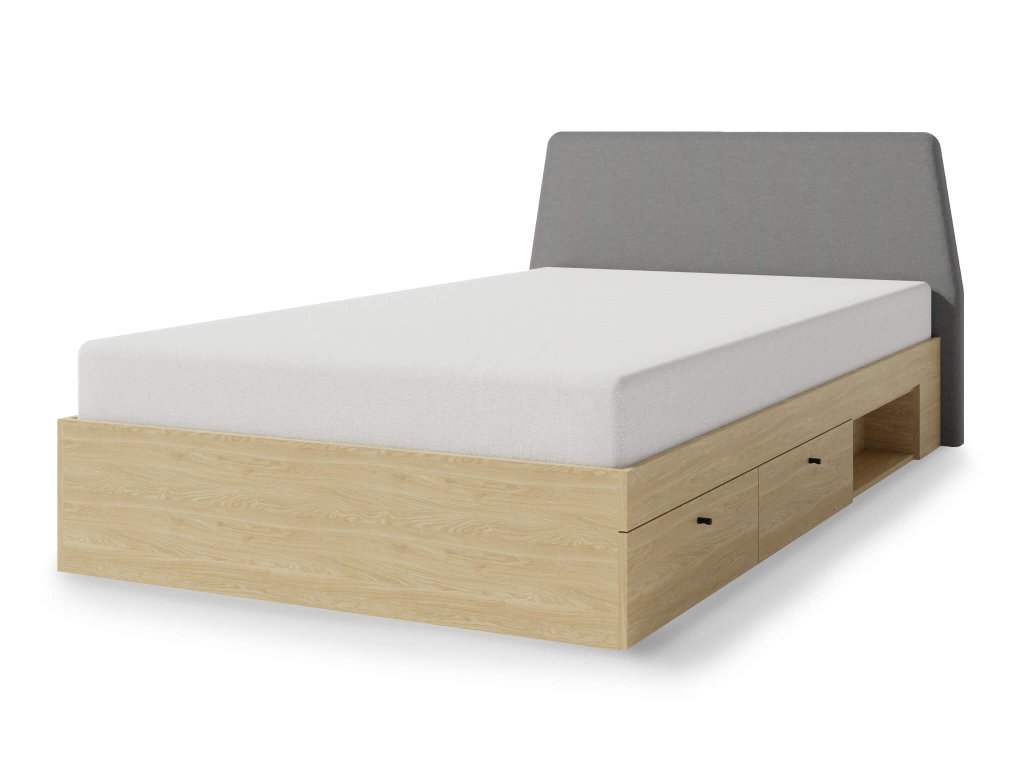 Posteľ je vybavená pohodlným čalúneným čelom, ktoré poskytuje maximálny komfort pri čítaní alebo sledovaní televízie. Dve praktické výsuvné zásuvky na kolieskach ponúkajú dostatok úložného priestoru na čokoľvek čo uznáte za vhodné. Zásuvky sú zdobené čiernymi kovovými rukoväťami, ktoré dodávajú posteli moderný a štýlový vzhľad. Zároveň sú praktické a odolné. Výrez po pravej strane zásuviek slúži ako ideálne miesto na odloženie drobností alebo mobilného telefónu pred odchodom do ríše snov. Táto posteľ obohatí vašu spálňu štýlom ako aj praktickým úložným priestorom. Neváhajte a zaobstarajte si kvalitnú posteľ ktorá naozaj stojí za to.