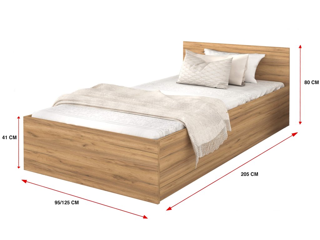 Moderná jednolôžková posteľ Dolly s úložným priestorom, vás prekvapí svojím jednoduchým vzhľadom. Je vhodná do detskej, študentskej či hosťovskej izby. Posteľ má priestranný úložný priestor, do ktorého sa zmestí mnoho ďalších vecí. Konštrukcia postele je vyrobená z kvalitnej nábytkovej dosky DTD o hrúbke 16-18 mm, ktorá je odolná a ľahko sa čistí. Súčasťou postele je kvalitný kovový rošt s drevenými lamelami. Na dvíhanie roštu v posteli, sú využívané dva plynové piesty o sile 400N až 1000N /ks, v závislosti od rozmeru postele.