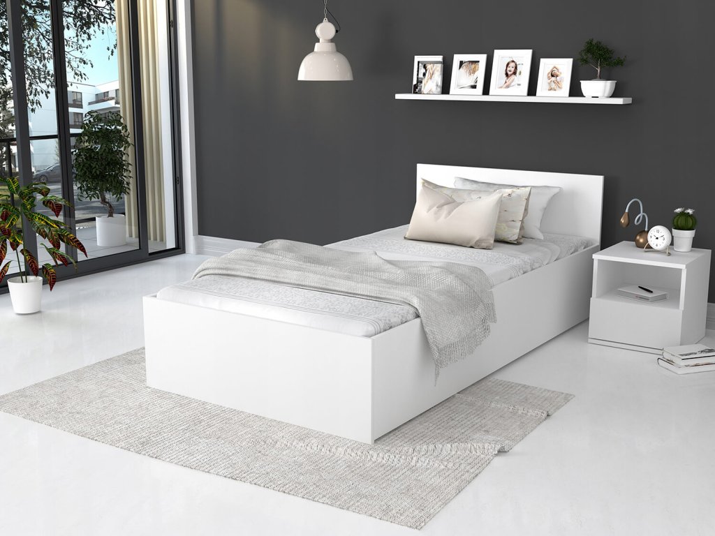 Biela jednolôžková posteľ Dorian Vás zaujme svojim jednoduchým vzhľadom. Posteľ je vďaka svojmu minimalistickému dizajnu vhodná do detskej, študenstskej či hosťovskej izby. Posteľ je vyrobená z kvalitnej nábytkovej dosky DTD o hrúbke 16-18 mm, ktorá je odolná a ľahko sa čistí. Súčasťou postele je kvalitný pevný drevený rošt.