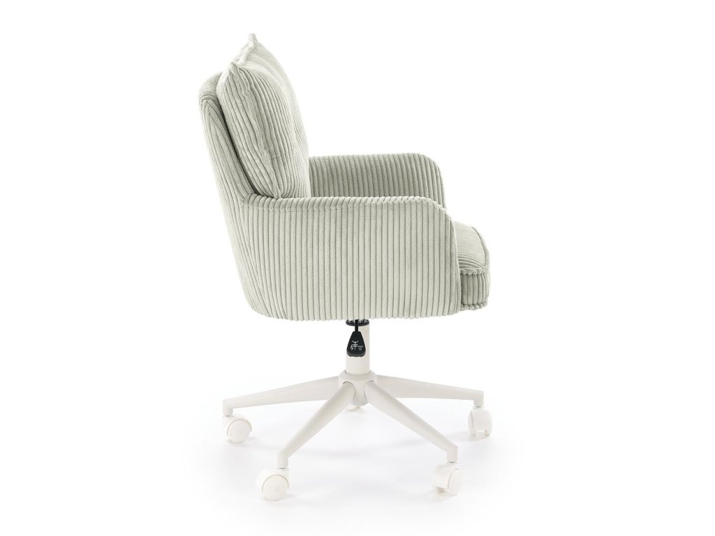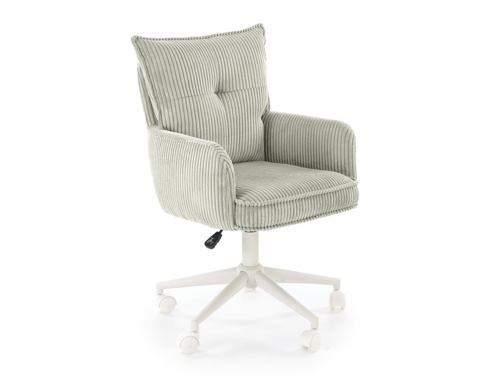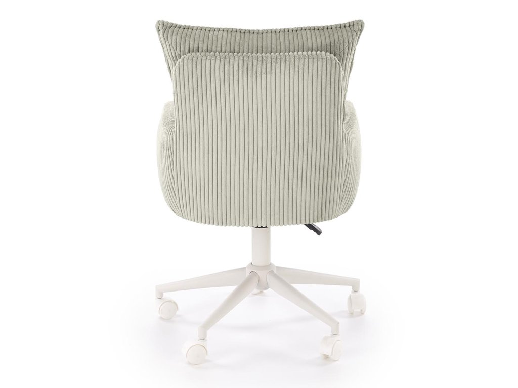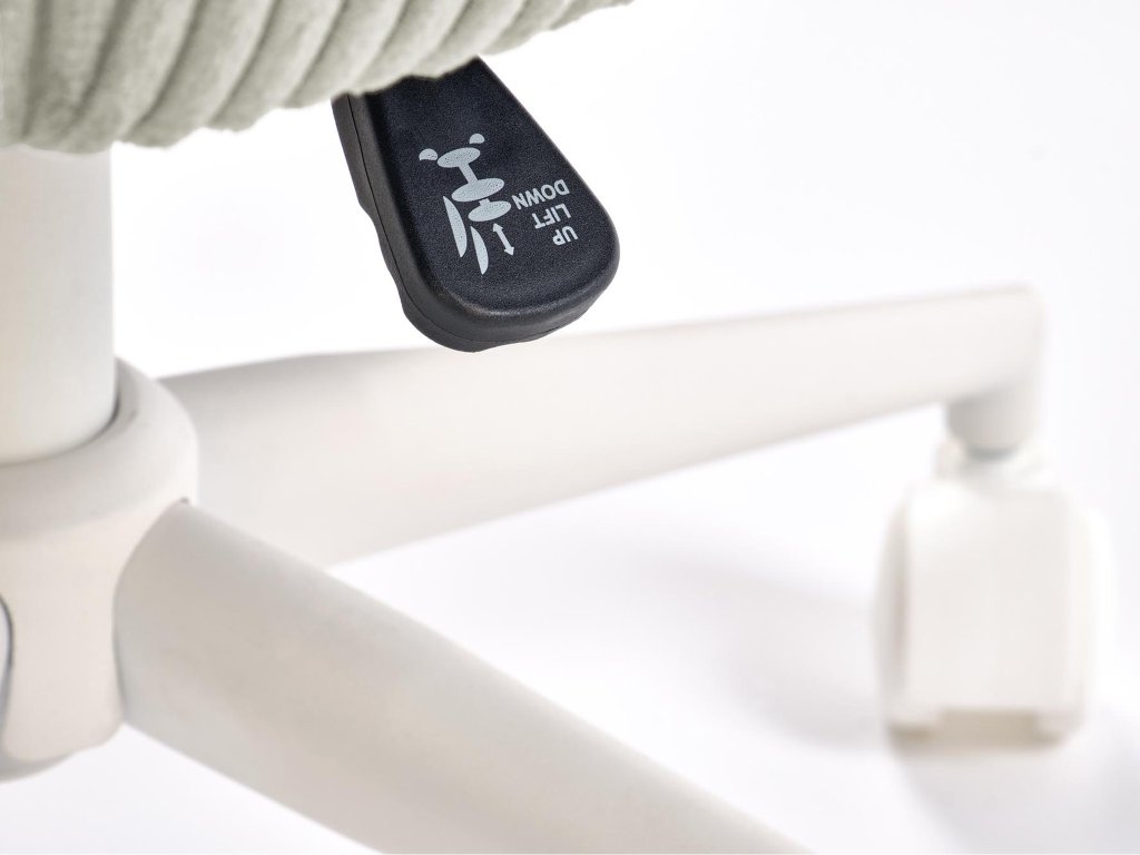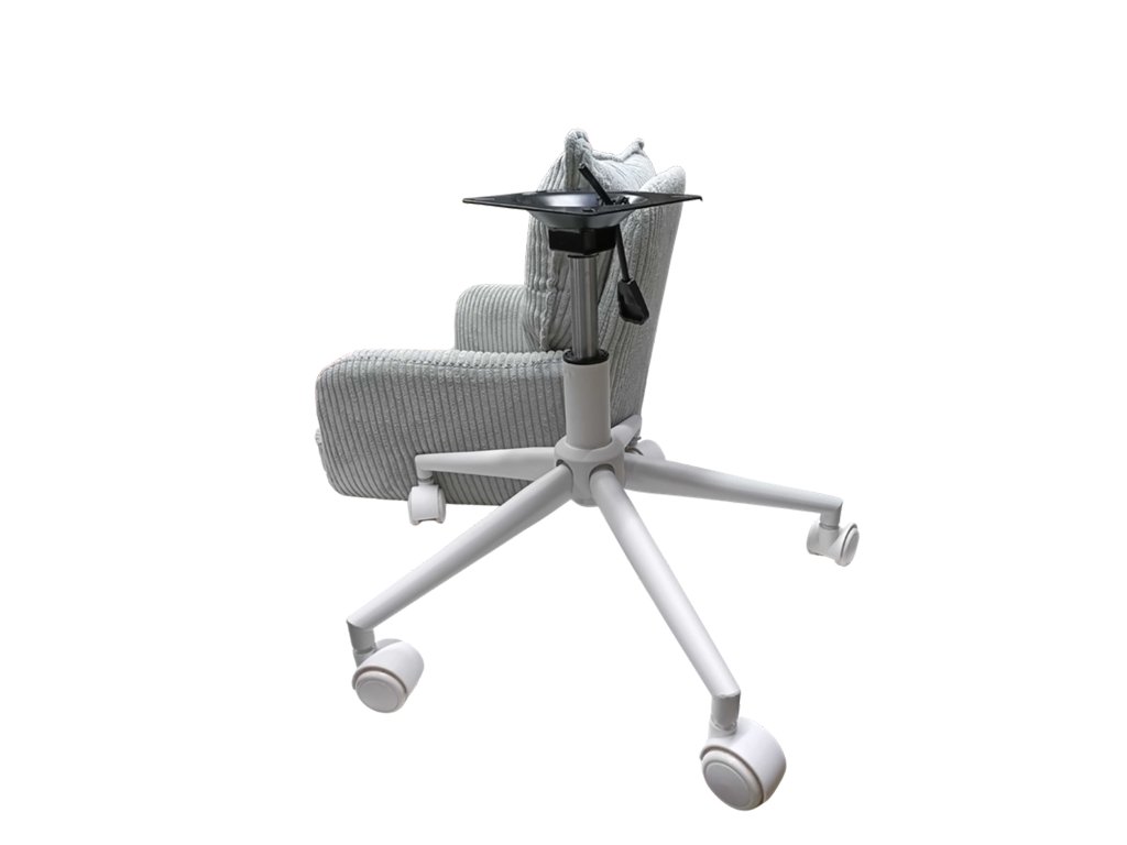 Výšku sedadla možno jednoducho nastaviť v rozsahu 46 až 54 cm, vďaka čomu sa stolička prispôsobí rôznej výške používateľov či výške písacieho stola. Stabilná kovová základňa v bielej farbe zabezpečuje vysokú odolnosť a dlhú životnosť, zatiaľ čo otočný mechanizmus umožňuje prirodzený pohyb počas sedenia. Kolieska sú univerzálne a šetrné k podlahám, takže stoličku možno pohodlne posúvať po koberci aj po tvrdom povrchu bez obáv z poškriabania.