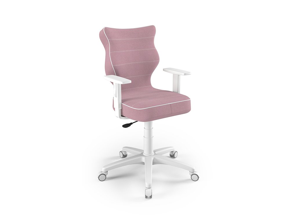 Dlhé hodiny strávené za počítačom prinášajú zo sebou možné bolesti chrbtice, v prípade ak sedávate v nesprávnej polohe dlhodobo. Ak chcete predísť týmto nepríjemným pocitom a bolestiam, investujte do ergonomicky navrhnutej otočnej stoličky DUO. Táto stolička vznikla v spolupráci s ortopédmi, vedcami z oblasti ergonómie, fyzioterapeutmi a biomechaniky, aby zabezpečila optimálnu podporu a pohodlie pri práci. Stolička je čalúnená púdrovo-ružovou látkou Jasmine, ktorá je odolná voči opotrebeniu a oderom. Disponuje nastaviteľnými bielymi podrúčkami a možnosťou zasunutia ju pod stôl. Konštrukcia z plastu a sklolaminátu zaisťuje odolnosť a sada mäkkých koliesok umožňuje pohodlný pohyb na rôznych povrchoch, vrátane kobercov. Výškové nastavenie stoličky sa ľahko nastaví pomocou plynového zdviháka. Stolička DUO je navrhnutá s dôrazom na podporu správnej polohy tela, čo je kľúčom k zdravému držaniu chrbtice.