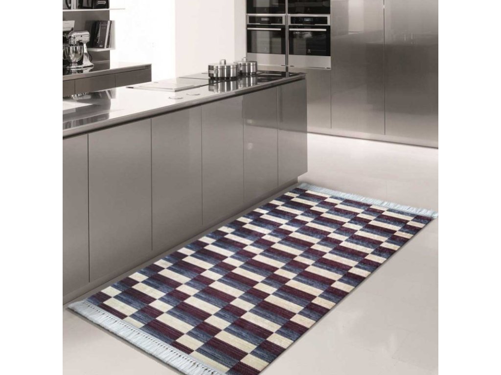 Tmavomodrý koberec BLAK s geometrickými vzormi je veľmi originálnym doplnkom do interiéru ako je kuchyňa alebo predsieň. Na jeho výrobu boli použité vysokokvalitné materiály, ktoré sú odolné voči deformácií a rôznym zmenám farby. Koberec je možné prať v práčke, čo určite ocení každá žena. Má protišmykové dno, vďaka čomu ho môžete ľahko umiestniť aj na dlaždenú podlahu.