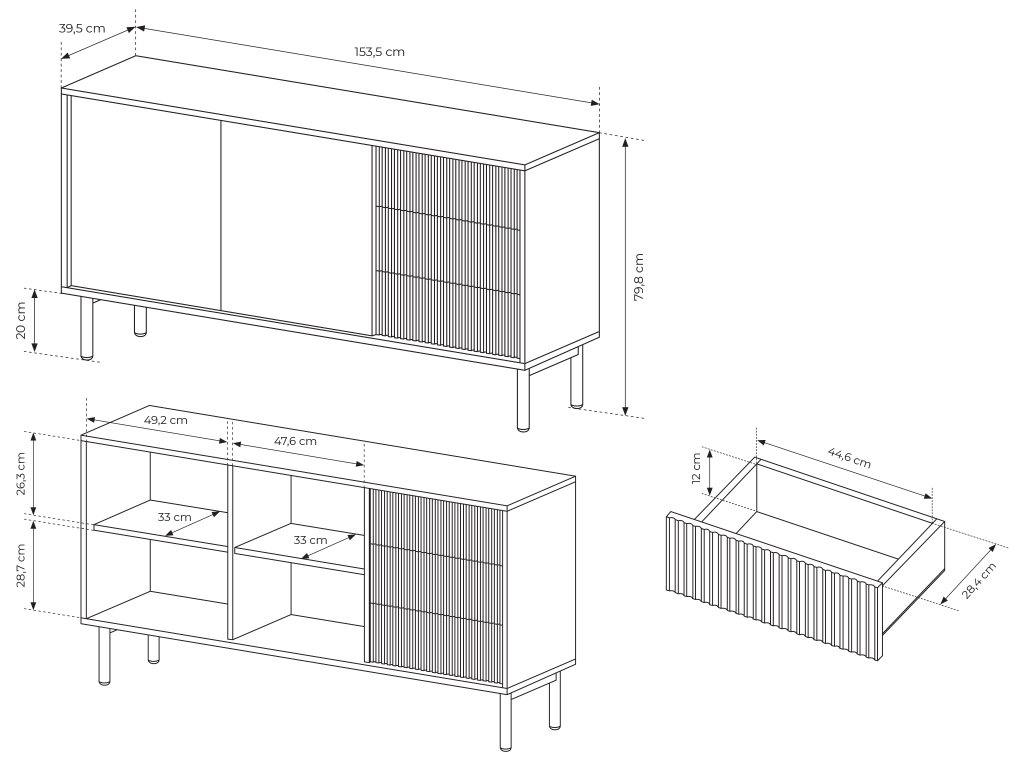 - Rozmer (šxvxh): 153,5 x 79,8 x 39,5 cm