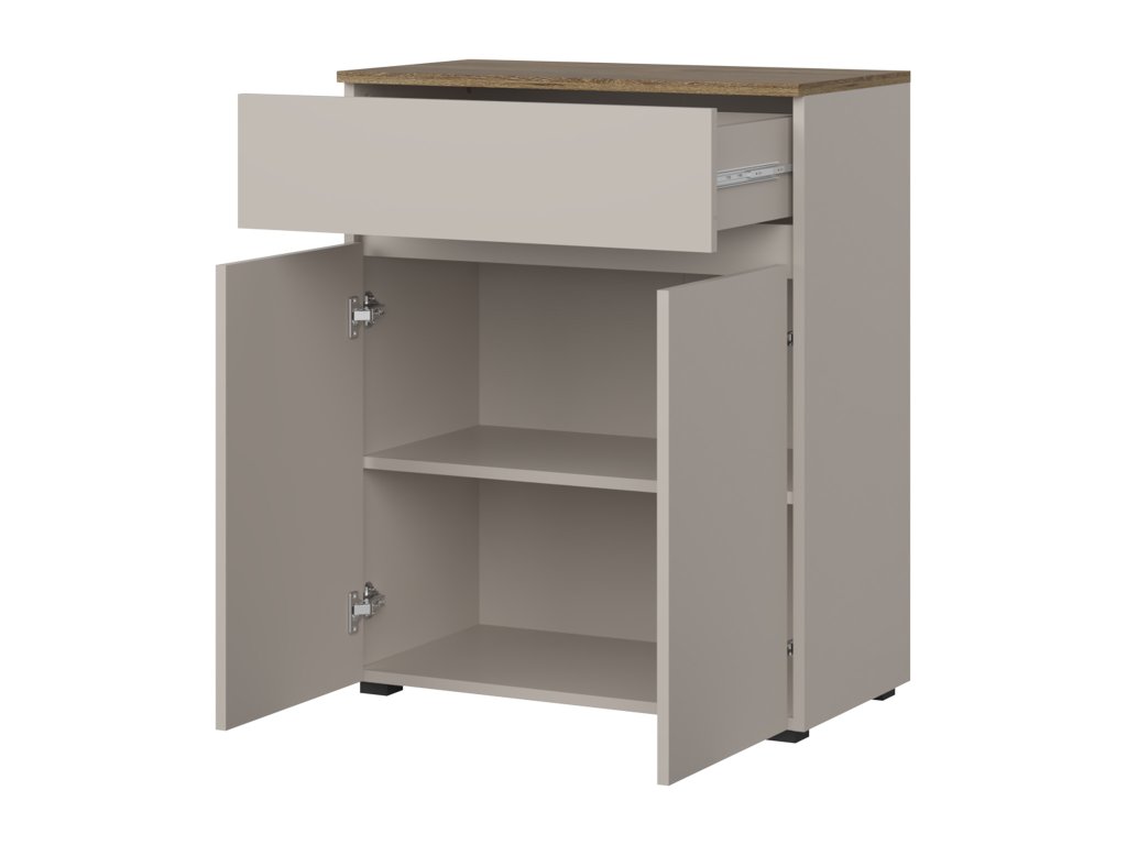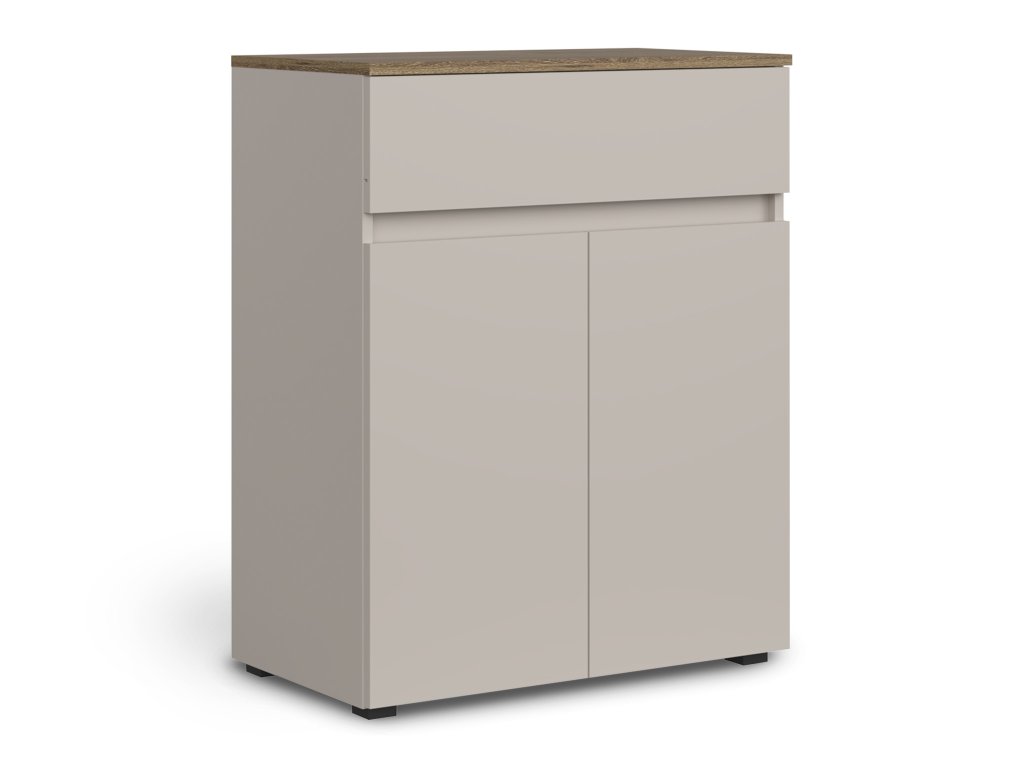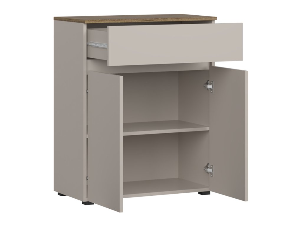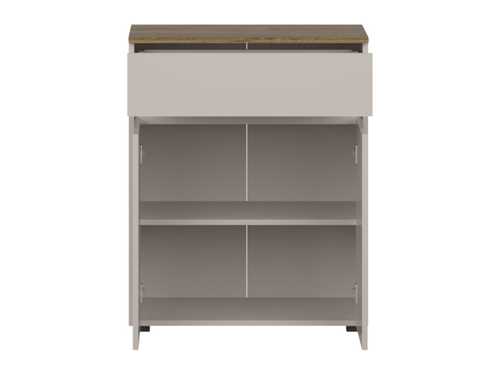 Komoda Ansi v elegantnom prevedení kašmír s dubom spája moderný vzhľad s funkčným úložným priestorom. Horná zásuvka je ideálna na drobnosti, ktoré chcete mať vždy poruke, zatiaľ čo spodná skrinka s policou ponúka dostatok miesta na prehľadné uloženie väčších predmetov. Čisté línie a kombinácia jemného kašmíru s prírodným dekorom dubu vytvárajú harmonický dizajn, ktorý jednoducho zapadne do predsiene, spálne aj obývačky. Kvalitné spracovanie a odolná laminovaná doska zaručujú stabilitu a dlhú životnosť pri každodennom používaní.