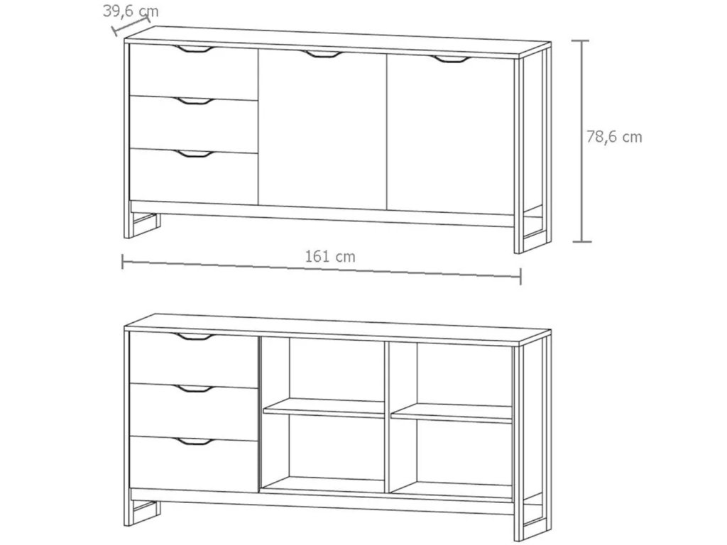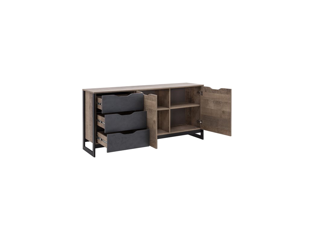 Komoda Bergen 160 je tvorená tromi praktickými zásuvkami a dvomi dvierkami, za každými z nich sa v ich strede nachádza jedna polica. Okrem toho aj vrchnú dosku komody môžete využiť ako odkladací priestor na rôzne maličkosti, ako sú fotografie, kvety alebo iné dekorácie.