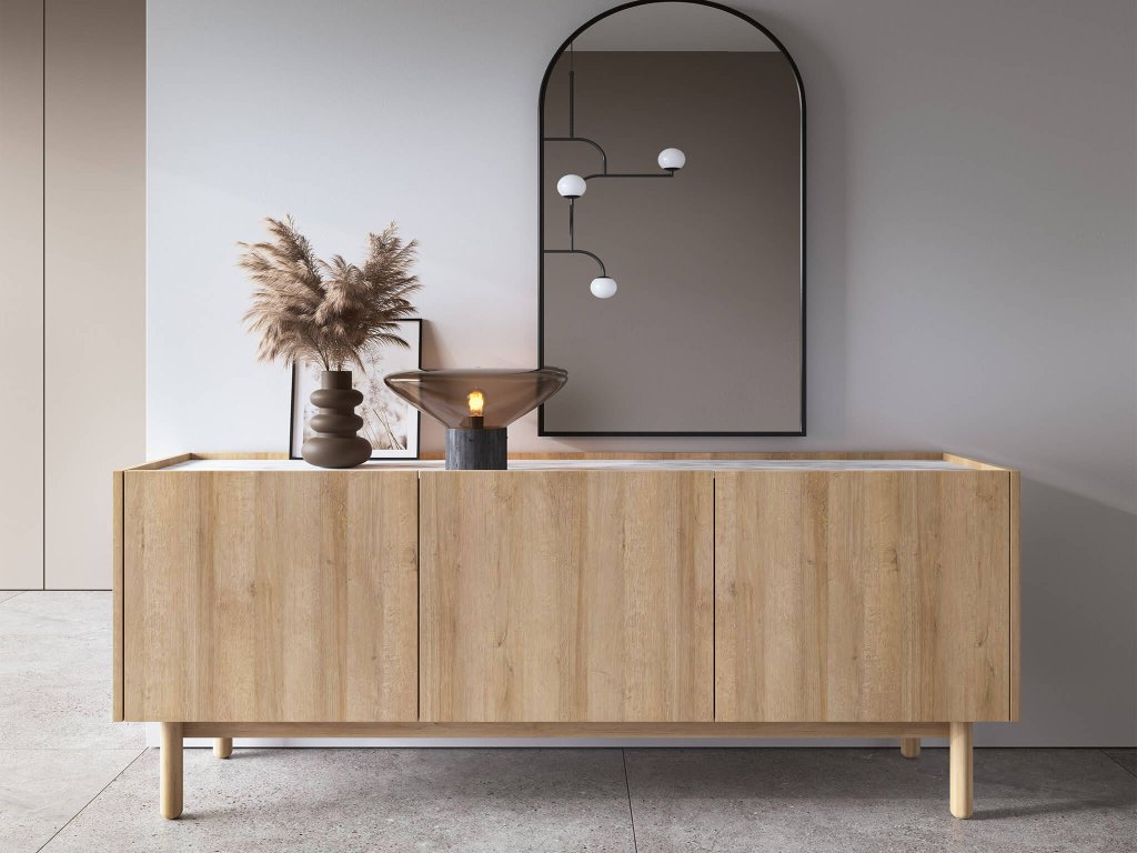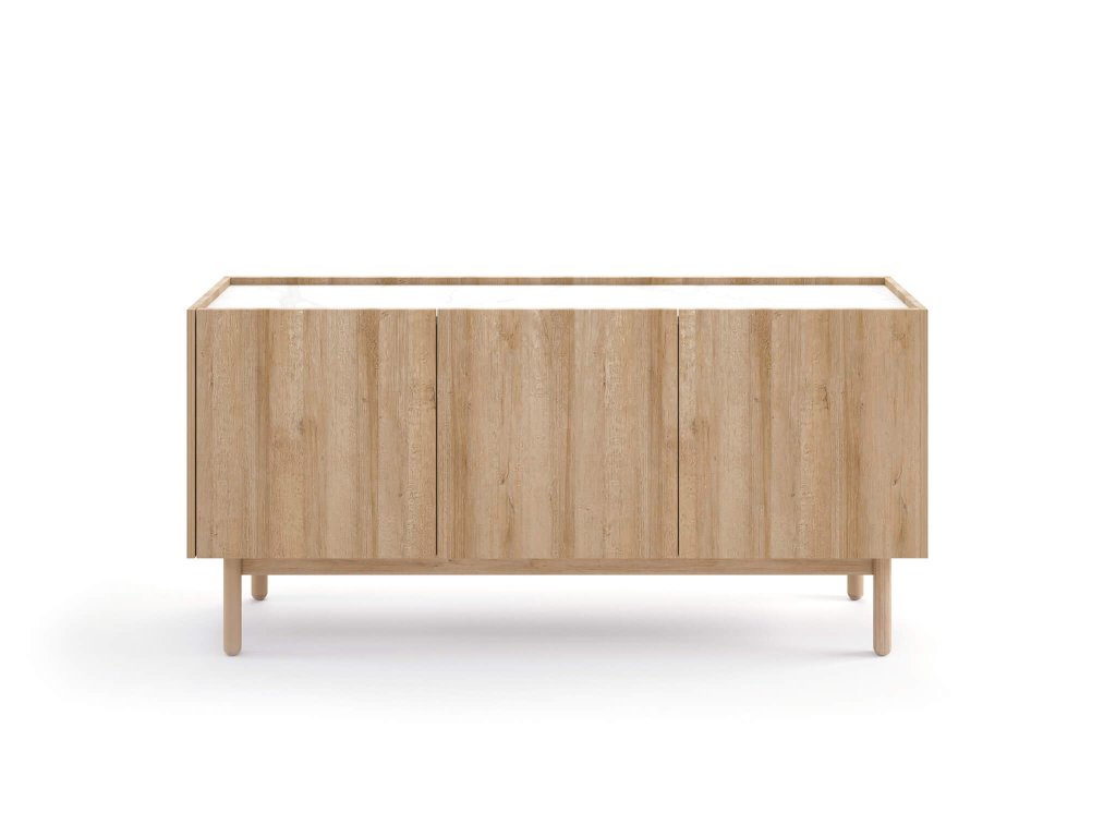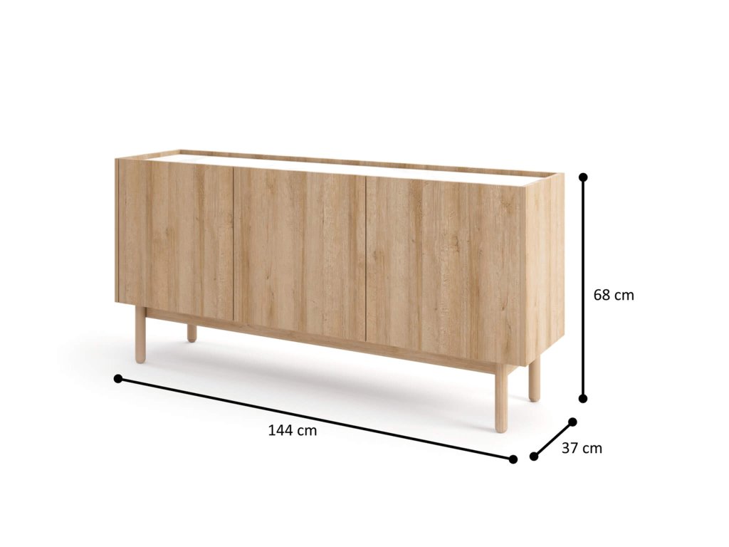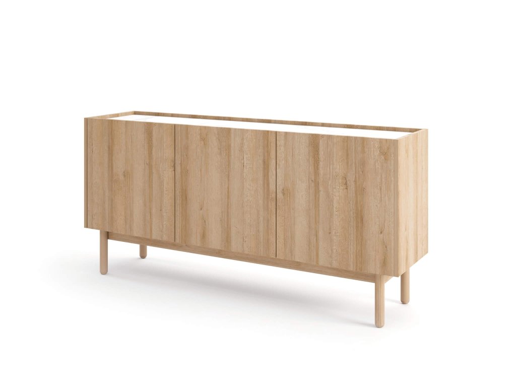 Priestranná trojdverová komoda BOHO K144/68 bude pôsobiť nerušene a útulne v každej obývačke, spálni či predsieni. Príjemnú farbu dub riviera v kombinácii s vrchnou doskou vo farebnom prevedení bieleho mramoru si hneď obľúbite. Vďaka jej bohatému úložnému priestoru v podobe troch skriniek s dvierkami si každá vec nájde svoje miesto. Za každými dvierkami sa nachádza jedna polica.