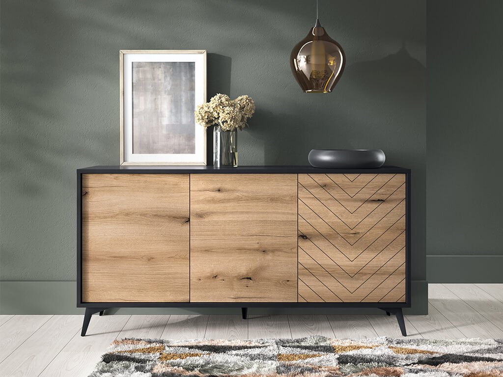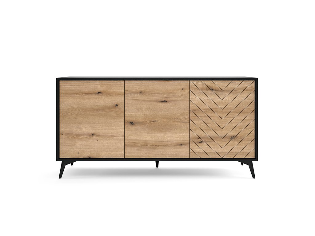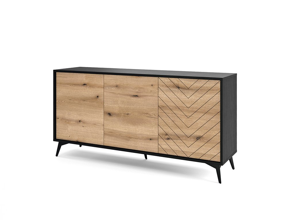 DIAMOND je dizajnovo zaujímavá a unikátna kolekcia nábytku, ktorá zaujme už na prvý pohľad. Skvelo zapasuje do moderných i klasických interiérov. Predné fronty sú obohatené o jemný ozdobný vzor rybej kosti. Nábytok je bezúchytový, otváranie zabezpečuje systém PUSH TO OPEN. Štýl a eleganciu nábytku dodávajú vysoké čierne kovové nožičky, vďaka ktorým budete mať čisto aj pod nábytkom. Nábytok sa vyznačuje minimalistickými tvarmi a jednoduchosťou, vďaka čomu sa hodí do akokoľvek zariadeného interiéru. S kolekciou Diamond si vyskladáte modernú obývačku, avšak niektoré kúsky si nájdu miesto aj v predsieni, jedálni či spálni. Farebná kombinácia matnej čiernej s prírodnou farbou dubu pôsobí veľmi príjemne a útulne. Diamond je spojením funkčnosti s mimoriadne atraktívnym vzhľadom.