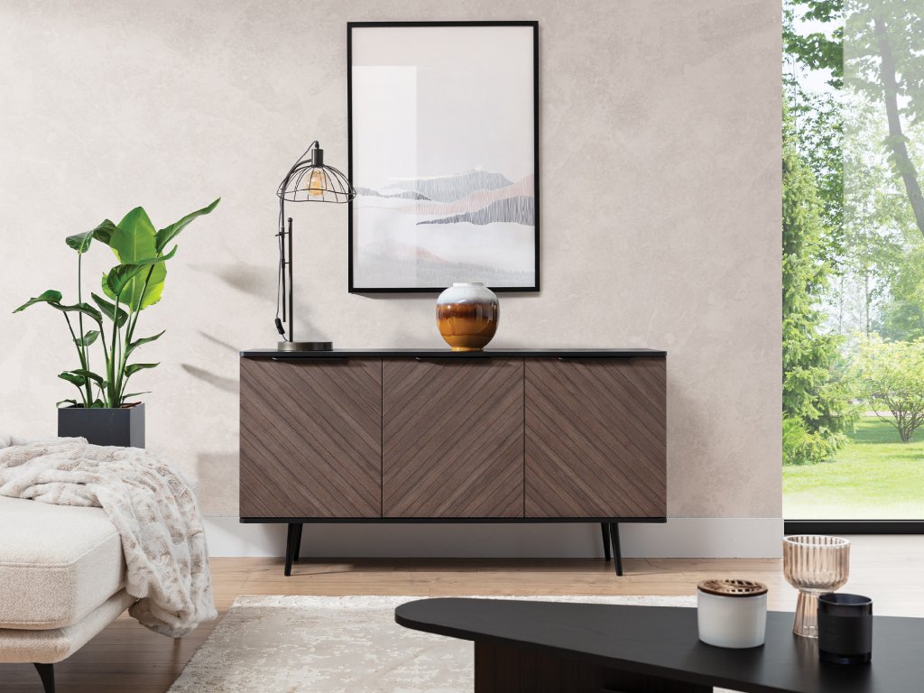 Nábytková kolekcia PINELLI je ideálnym riešením pre obývaciu izbu, ktorá ponúka moderný dizajn a funkčnosť, ktorá sa perfektne hodí do rôznych interiérov. Skladá sa z komody, konferenčného stolíka, knižnice, TV stolíka a vitríny so sklenenými dvierkami. Predné dvierka na kolekcii sú ozdobené vzorom rybej kosti vo farbe dub orech, ktorá dodáva útulnosť a šmrnc. Kolekcia PINELLI je vyrobená z drevotriesky, ktorej hrúbka je 16 mm. Kovové vysoké nožičky dodávajú kolekcii eleganciu a vzdušnosť. Nábytok má kovové čierne úchyty. Farebné prevedenie kolekcie je v spojení čiernej a dub orech. Kolekcia PINELLI pôsobí elegantne a dodá vášmu priestoru šmrnc.
