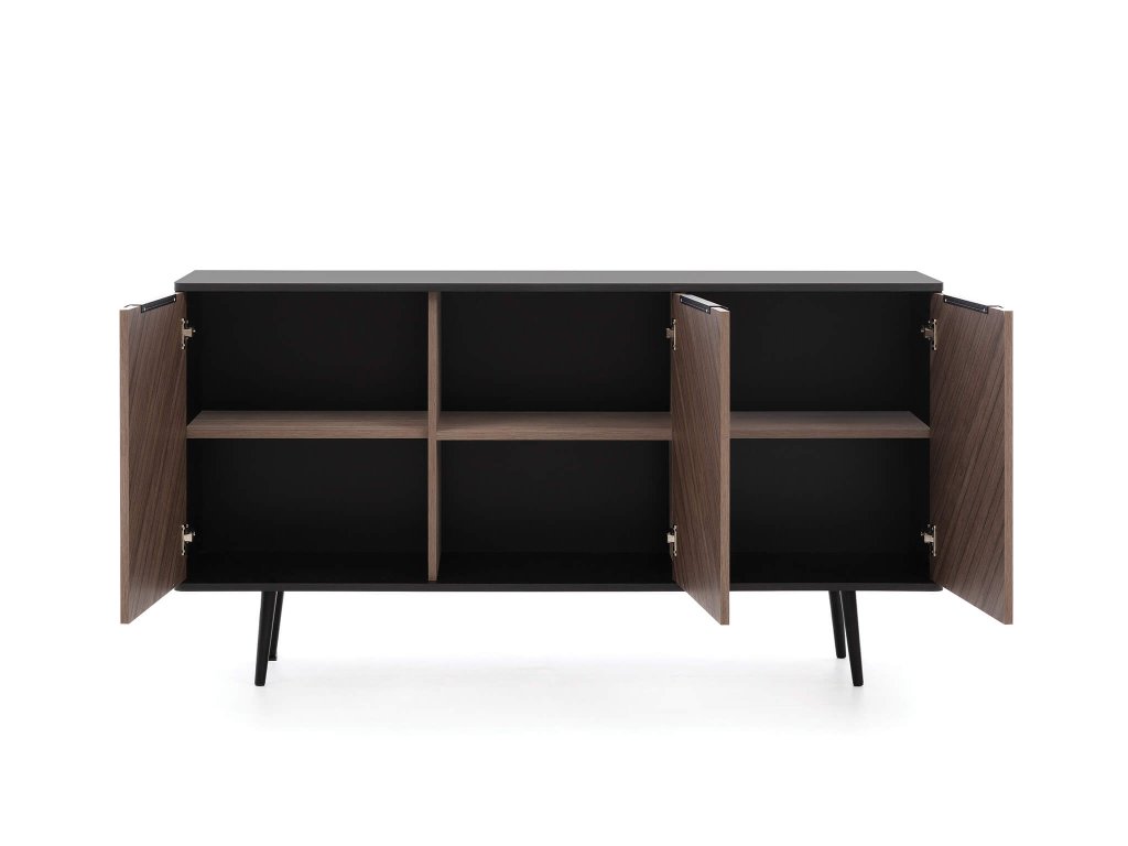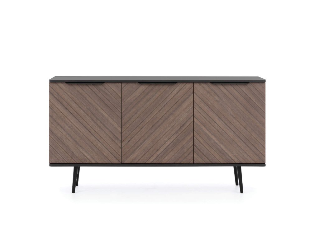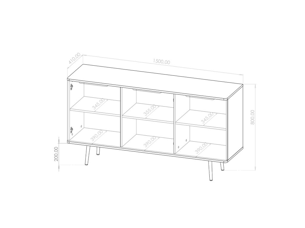 Trojdverová komoda PINELLI je súčasťou obývacej izby, ktorá je určená do obývačky. Skladá sa z troch skriniek, ktoré slúžia ako dokonalý úložný priestor vo vašom interiéri. Zadná strana komody je vyrobená z HDF dosky, ktorej hrúbka je 3 mm. Čierne kovové rukoväte na prednej časti dodávajú eleganciu. Komoda má zabudované tiché zatváranie, ktoré umožňuje tiché a šetrné zaobchádzanie s nábytkom.