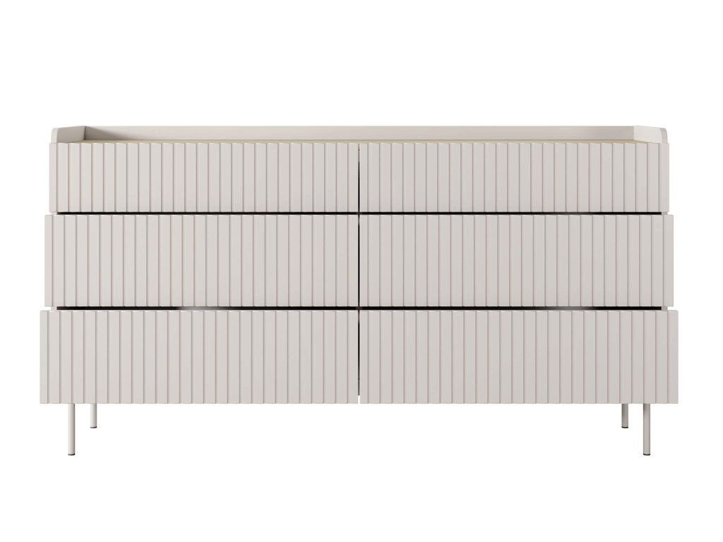 Premeňte svoj domov pomocou tejto širokej 6-zásuvkovej komody, kde sa elegancia snúbi s praktickosťou. Či už je tento kúsok umiestnený vo vašej spálni, obývačke alebo predsieni, dodáva mu nádych sofistikovanosti a poskytuje úložné riešenie, ktoré potrebujete. Vylepšite svoj životný priestor touto štýlovou a funkčnou komodou, ktorá je ideálna pre moderné domácnosti.
