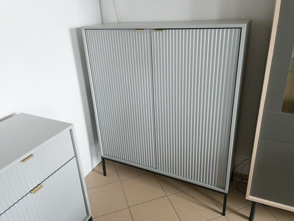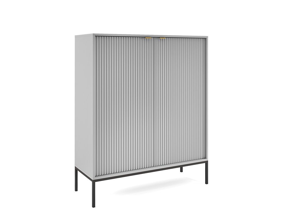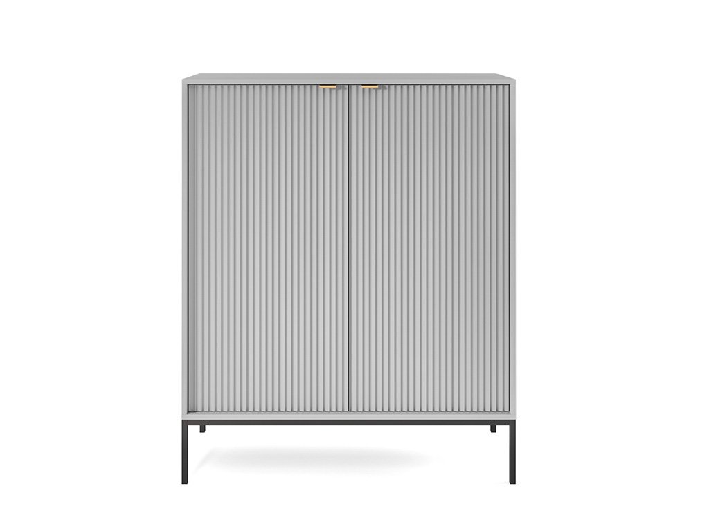 Nesmierne elegantná a štýlová kolekcia NOVA nesmie chýbať v žiadnom interiéri milovníkov moderného dizajnu. Ozdobné drážkované predné časti nábytku sa nádherne dopĺňajú s brúsenými zlatými úchytkami z hliníku. Ľahkosť nábytku dodáva čierna kovová konštrukcia s vysokými nožičkami. S kolekciou Nova si vyskladáte modernú obývačku, avšak niektoré kúsky môžete umiestniť aj do predsiene, jedálne či spálne. Korpus nábytku je tvorený laminovanou DTD doskou, kým drážkované čelá nábytku tvorí kvalitná MDF doska.