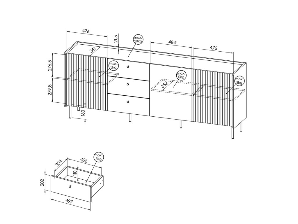 Typ: | S nožičkami, So zásuvkami, S dvierkami, Široké |