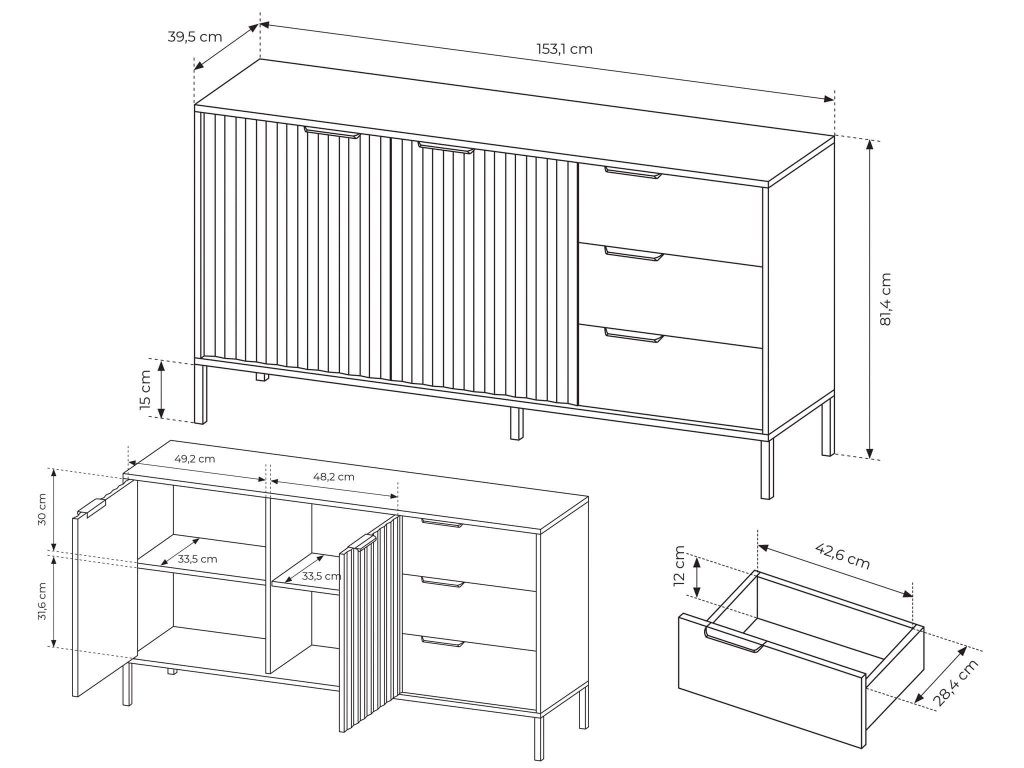- Rozmery (šxvxh): 153,1 x 81,4 x 39,5 cm