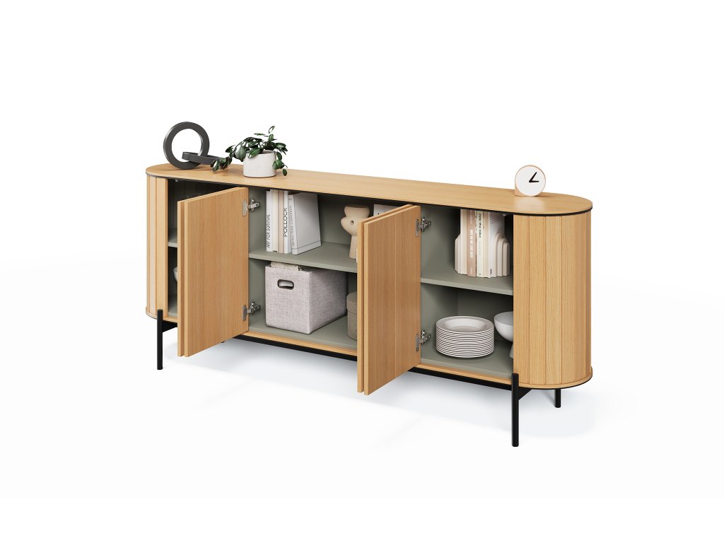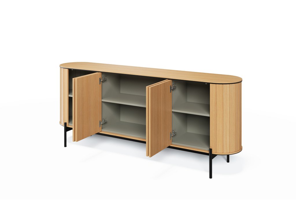 Dodajte svojmu interiéru nádych sofistikovanosti s komodou RT-04 z kolekcie Rotto, ktorá vyniká svojím moderným a minimalistickým spracovaním. Jej čisté línie a funkčné riešenia z nej robia ideálny doplnok do obývačky, spálne alebo predsiene. Za štvoricou dvierok, ktoré sú vybavené pohodlným mechanizmom push-to-open, sa ukrývajú tri praktické police, pripravené na uskladnenie všetkého potrebného. Čierne kovové nohy dodávajú komode stabilitu a zároveň jej pridávajú štýlový a vzdušný vzhľad. Povrch v dekóre prírodného dubu pôsobí elegantne a ľahko sa udržiava, čo zaručuje dlhú životnosť nábytku. Komoda do obývačky RT-03 Rotto predstavuje dokonalé spojenie funkčnosti a estetického dizajnu.