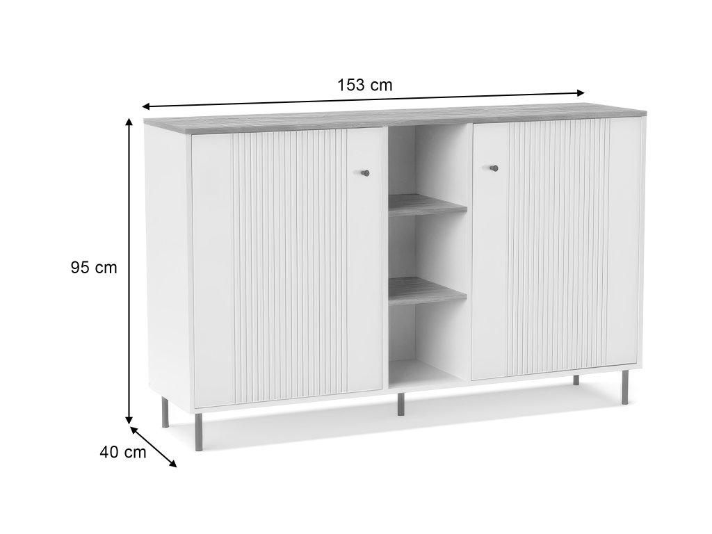 - Materiál: 16 mm lamino doska, MDF doska potiahnutá PVC fóliou, kovové úchytky a nohy