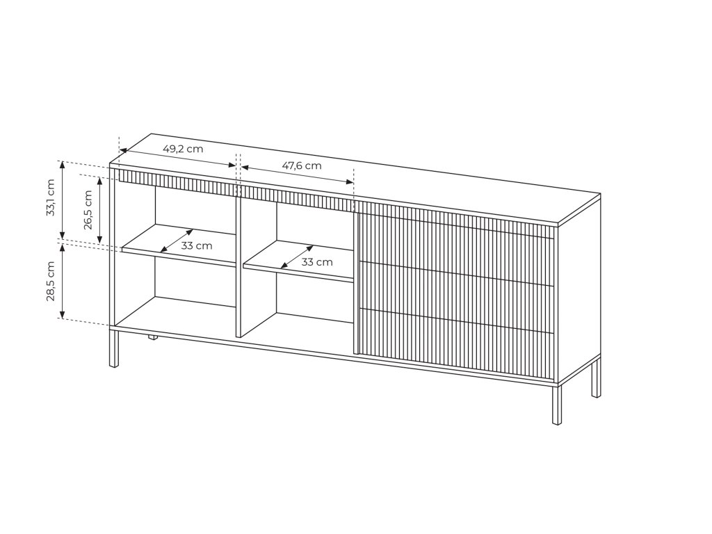 Kolekcia SENSO je elegantná a zároveň veľmi moderná, ideálna do každej obývačky. Jej výrazným znakom je 3D vrúbkovaný efekt na prednej strane nábytku. SENSO stojí na vysokých kovových nožičkách a má jemný béžový odtieň, ktorý je trvalou trefou na trhu. Nábytok z tejto kolekcie je vybavený systémom "push to open", umožňujúcim otváranie skriniek a poličiek jednoduchým dotykom na rohoch dverí. Jeho flexibilita umožňuje využitie v iných miestnostiach domácnosti, ako sú predsieň alebo pracovňa. Konštrukcia nábytku je z laminovanej MDF dosky, s drážkovanými čelami a ABS hranami, čo zabezpečuje stabilitu a odolnosť. Zadná HDF doska na komode je vyrobená v prírodnej farbe.