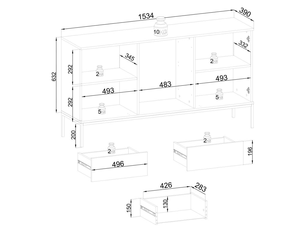 Typ: | S nožičkami, So zásuvkami, S dvierkami, Široké |