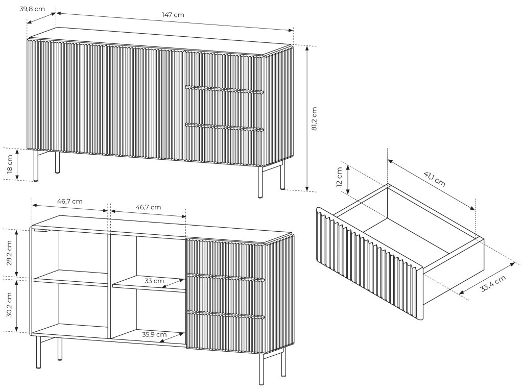 - Rozmer (šxvxh): 147 x 81,2 x 39,8 cm
