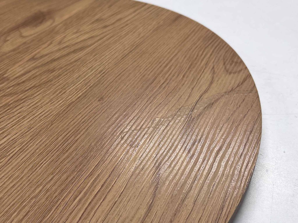 Poškodenie na dyhe vonkajšej strany menšieho stola, pripomínajúce lepidlo. Produkt sa nachádza v originálnom balení.