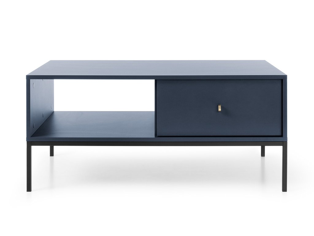 Konferenčný stolík Bono 104 je vyrobený z kvalitnej DTD dosky hrúbky 16 mm, chránenou ABS páskou na predĺženie životnosti. Vrchná doska je z certifikovanej DTD dosky s hrúbkou 16 mm a je taktiež chránená proti mechanickému poškodeniu ABS páskou, čo zaručuje vysokú trvanlivosť a odolnosť voči mechanickému poškodeniu. Stolík má jednu zásuvku a otvorenú policu na odloženie drobností. Elegantný zlatý kovový úchyt a kovové čierne nohy dopĺňajú minimalistický dizajn.