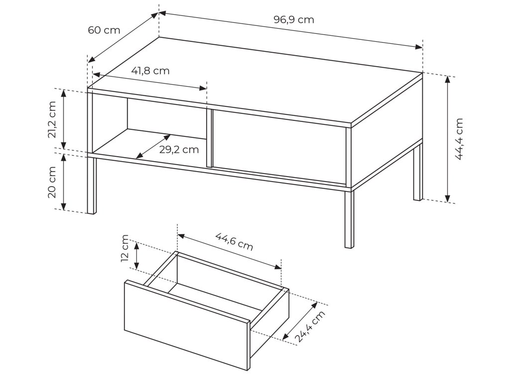Moderný konferenčný stolík Dast je elegantný kúsok nábytku z obývačkovej kolekcie Dast, ktorý sa stane skvelým doplnkom každej domácnosti. V kombinácii béžovej farby s čiernymi kovovými nohami pôsobí tento stolík veľmi elegantne a vkusne. Konferenčný stolík Dast ponúka dve zásuvky oproti sebe, ktoré sú vybavené systémom otvárania push-to-open. Tento systém umožňuje otvoriť zásuvky zatlačením, bez nutnosti ťahať kovové madlá, ktoré by inak pokazili čistý vizuál nábytku. Okrem toho má konferenčný stolík aj dve otvorené poličky z oboch strán, poskytujúce dostatok priestoru na uskladnenie rôznych predmetov, ako napríklad kníh, časopisov alebo dekoratívnych prvkov. Stolík je vyrobený z kvalitnej laminovanej dosky, ktorá je odolná voči poškriabaniu a odolná voči vlhkosti. Všetky okraje sú zabezpečené kvalitnými ABS hranami, ktoré poskytujú dodatočnú ochranu pred mechanickým poškodením. Výsledkom je moderný, elegantný a praktický konferenčný stolík, ktorý bude dokonalým doplnkom každej obývačky, kancelárie alebo iného priestoru, kde si potrebujete vytvoriť priestor na relaxáciu, alebo na pracovné schôdzky a konferencie.