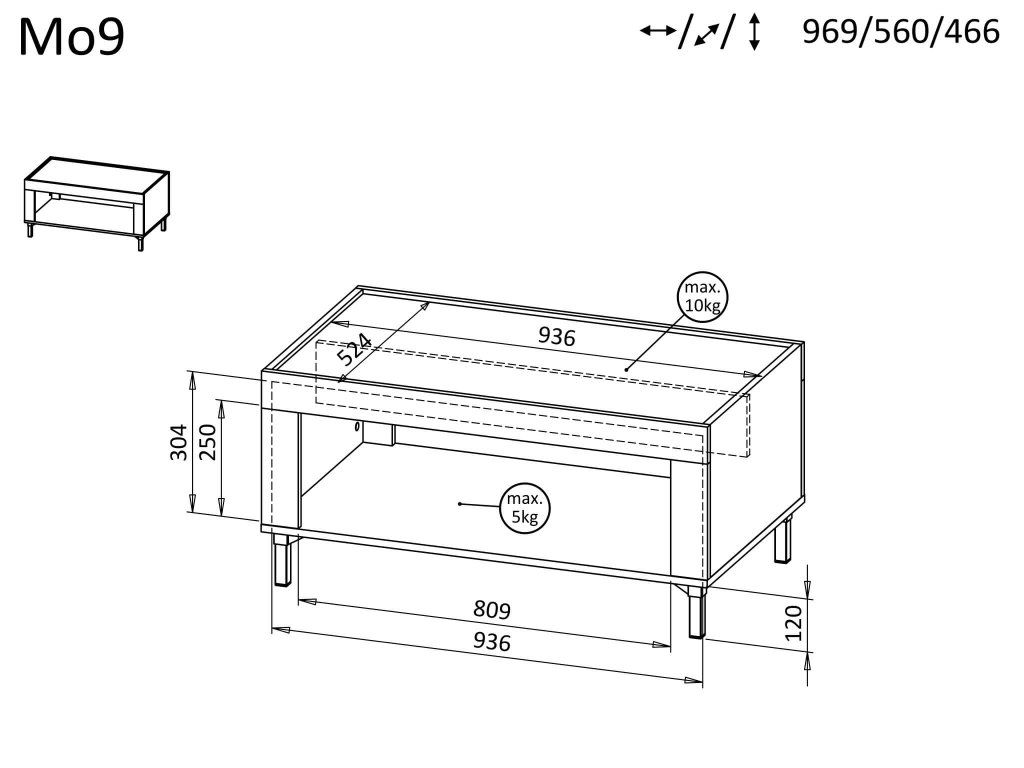 Stolík stojí na štyroch vysokých pevných nožičkách, ktoré mu dodávajú stabilitu a uľahčujú upratovanie pod ním. Tento konferenčný stolík je ideálny nielen pre každodenné využitie, ale aj ako dizajnový prvok vo vašej obývačke. Konferenčný stolík Mossa kombinuje eleganciu s funkčnosťou a je skvelou voľbou pre tých, ktorí hľadajú moderný nábytok s praktickými vlastnosťami.
