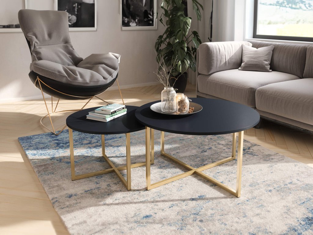 Menší konferenčný stolík z kolekcie Pula je praktickým a spratným pomocníkom do každej štýlovej obývačky. S jeho okrúhlym tvarom a priemerom 60 cm je tento konferenčný stolík ideálnym doplnkom do vášho interiéru. Nábytok je vyrobený z kvalitnej 16 mm hrubej drevotriesky, ktorá mu zabezpečujú pevnosť a trvanlivosť. Jeho ABS hrany zaisťujú, že bude vyzerať skvele aj po dlhých rokoch používania. Modrá doska stolíka pridáva jemný a moderný dotyk do vášho priestoru, zatiaľ čo zlaté nohy dodávajú eleganciu a šarm. Tento konferenčný stolík nie je len funkčným kusom nábytku, ale aj dekoratívnym prvkom, ktorý prinesie do vášho obývacieho priestoru štýlový a sofistikovaný nádych. S konferenčným stolíkom Pula získate nielen praktický nábytok, ale aj kúsok umenia, ktorý vynikne vo vašej obývačke.