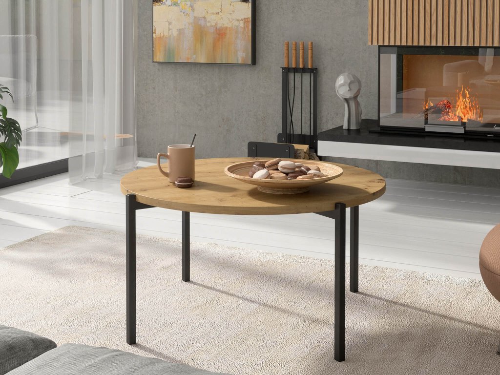 Neváhajte a objednajte si konferenčný stolík Sigma A, ktorý je skvelým doplnkom do vašej obývacej izby alebo kancelárie. Tento moderný stolík v sebe spája skvelý dizajn, kvalitné materiály a praktické vlastnosti, aby splnil vaše potreby pre pohodlné a efektívne stretnutia. Hlavným bodom je jeho okrúhla doska vyrobená z 22 mm drevotriesky, ktorá prináša robustnosť a dlhú životnosť. Kombinácia s prírodnou dubovou farbou dodáva stolíku sofistikovaný a štýlový vzhľad, ktorý sa skvele hodí do akéhokoľvek moderného interiéru. Stabilitu stolíku zabezpečujú čierne kovové nohy, ktoré sú nielen pevné, ale aj esteticky príjemné. Ich elegantný dizajn prispieva k celkovému vkusnému dojmu a poskytuje pevnú oporu pre stolovú dosku. Dôležitou vlastnosťou tohto stolíka sú ABS hrany, ktoré chránia stolovú dosku pred mechanickým poškodením a zabraňujú odštiepeniu hrán. Týmto spôsobom sa predlžuje životnosť stolíka a udržuje sa jeho kvalitný vzhľad aj po dlhodobom používaní. Stolík Sigma A ponúka dostatok priestoru pre usporiadanie občerstvenia, dokumentov či notebookov, počas vášho oddychu alebo stretnutia, a vďaka jeho okrúhlemu tvaru je vytvorená príjemná a rovnovážna atmosféra, ktorá podporuje účinnú komunikáciu a spoluprácu. Ak hľadáte spoľahlivý, vkusný a praktický konferenčný stolík, Sigma A je ideálnou voľbou. Ladí s modernými trendmi v dizajne nábytku a je skvelým doplnkom pre vašu domácnosť alebo kanceláriu. Investujte do kvality a profesionálneho výzoru s konferenčným stolíkom Sigma!