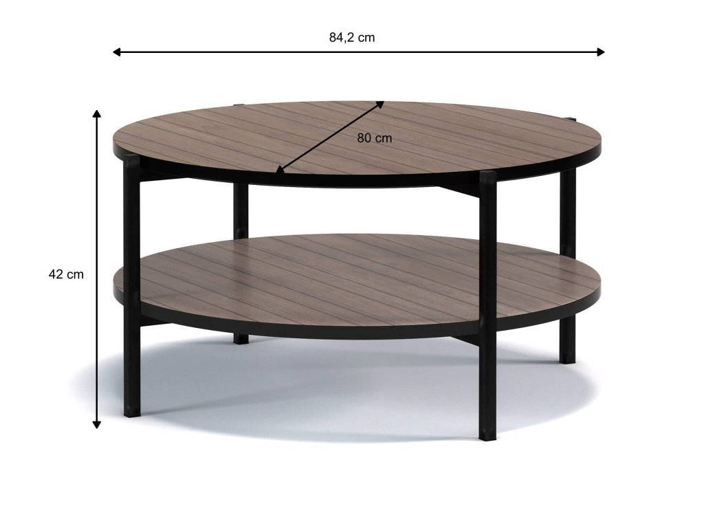 Konferenčný stolík Sigma B - Elegantná spojitosť funkcionality a dizajnu. Stolík Sigma B je špičkový kúsok nábytku, ktorý sa vyníma svojou jedinečnou kombináciou okrúhleho tvaru, kvalitných materiálov a moderného vzhľadu. Navrhnutý s ohľadom na potreby moderných obývačiek či pracovní, ponúka Sigma B ideálnu rovnováhu medzi eleganciou a praktickým využitím. Hlavným materiálom použitým na výrobu tohto stolíka je 22 mm hrubá drevotriesková doska, ktorá zaručuje dostatočnú pevnosť a odolnosť stola. Pre vyššiu stabilitu a viac odkladacieho priestoru sú dve takéto dosky umiestnené pod sebou, čo zabezpečuje, že Sigma B je pripravená obstáť aj pri náročných používaniach. Jeho výnimočná hnedá farba a čierne kovové nohy sú skvelou voľbou pre moderné pracovné prostredie, ktoré preferuje minimalistický, no sofistikovaný štýl. V kombinácii s ABS hranami, ktoré chránia stolovú dosku pred poškodením a zabraňujú odlupovaniu, je Sigma B pripravená vydržať roky každodenného používania bez toho, aby strácala na svojej estetickej kráse. Okrem svojho nadčasového dizajnu ponúka stolík dostatok priestoru pre pohodlnú prácu, stretnutia alebo oddych. Okrúhly tvar stola podporuje rovnomernú distribúciu miesta a umožňuje vytvoriť priateľskú atmosféru pre vaše posedenia. Vďaka svojej všestrannosti a kvalite je konferenčný stolík Sigma B skvelou investíciou pre každú domácnosť alebo kanceláriu. Prináša modernosť a profesionálny vzhľad do akejkoľvek miestnosti a stáva sa praktickým a štýlovým doplnkom pre vaše prostredie.