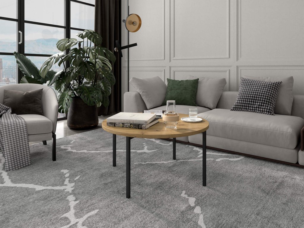 Toto je konferenčný stolík Sigma C. S jeho elegantným dizajnom a praktickými vlastnosťami sa stáva ideálnym spoločníkom pre vaše posedenia a oddych. Hlavnou charakteristikou stolíka Sigma C je jeho okrúhla doska s priemerom 80 cm, ktorá poskytuje dostatok priestoru pre komfortné a produktívne stretnutia viacerých ľudí. Doska stola je vyrobená z kvalitnej 22 mm hrubej drevotriesky, čo zabezpečuje jej pevnosť a odolnosť voči bežným nárazom a poškodeniam, čím sa zaručuje dlhá životnosť tohto nábytkového kúsku. Stolík Sigma C je vyhotovený v prírodnej dubovej farbe, ktorá dodáva miestnosti sofistikovaný a profesionálny vzhľad. Táto farba sa skvele hodí do akéhokoľvek interiéru a ľahko sa kombinuje s iným nábytkom a doplnkami. Čiernym kovovým nohám stolíka je venovaná osobitná pozornosť, keďže tvoria jeho stabilnú základňu. Tieto nohy dodávajú celému stolíku pevnosť a odolnosť, čo eliminuje nechcené pohyby stola a riziko preklopenia alebo kolísania. Ich minimalistický a elegantný dizajn prispieva k celkovému vkusnému vzhľadu stola. Ďalšou praktickou vlastnosťou sú ABS hrany dosky stola. Táto technológia chráni dosku pred odreninami a poškodením a zabezpečuje dlhú trvanlivosť povrchu. Konferenčný stolík Sigma C je vynikajúci výber pre všetkých, ktorí hľadajú spoľahlivý, štýlový a praktický nábytok pre svoje spoločenské priestory. S jeho okrúhlou doskou, pevnými kovovými nohami a ochrannými ABS hranami je tento stolík pripravený poskytnúť vám pohodlné a efektívne miesto pre vaše činnosti.